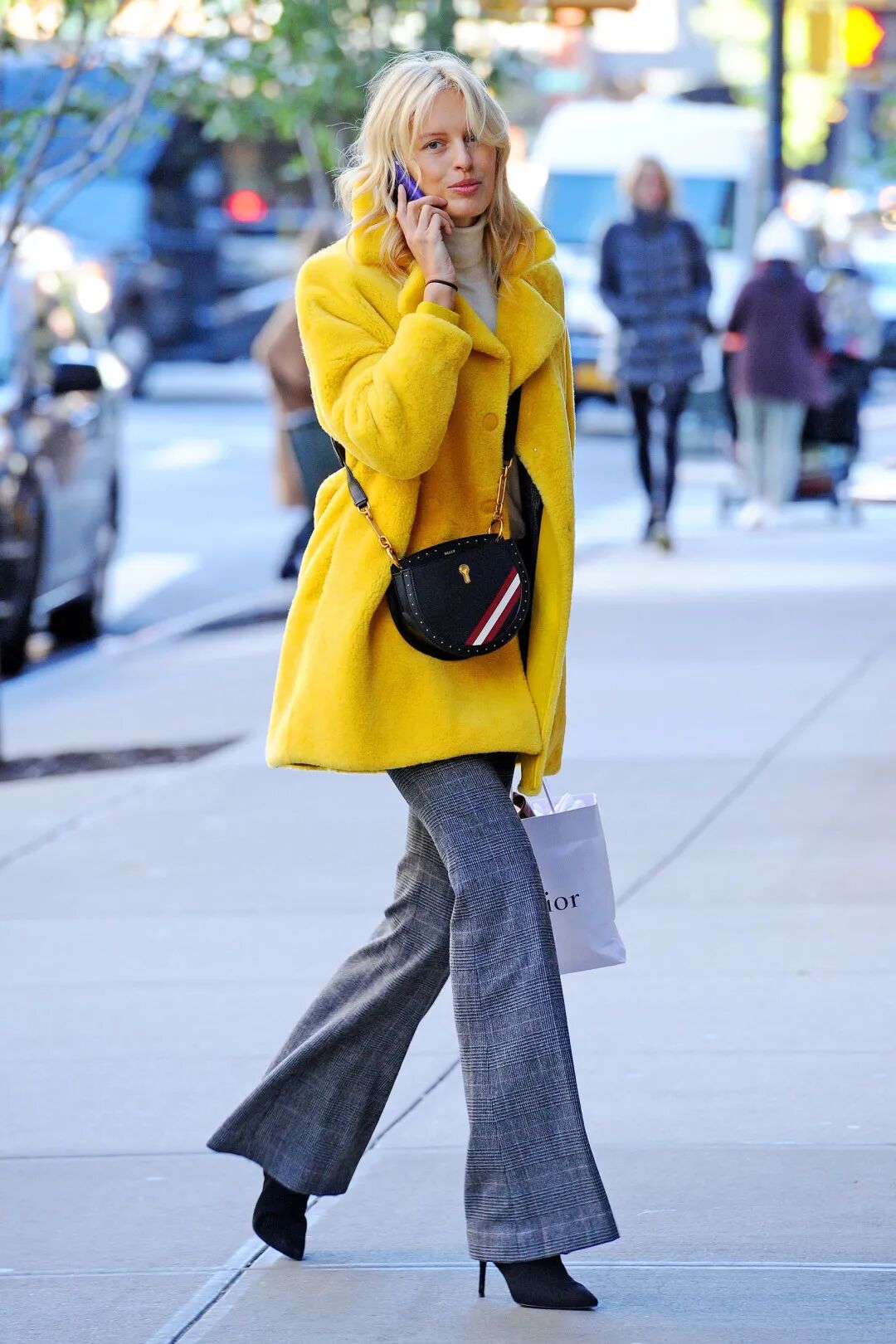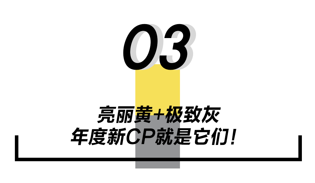 极致灰很好搭配,因为它本身包容度就特别高。任何靓丽的色彩遇到它,都可以互相拥抱融合。不同深浅的灰色也可以相互搭配,给造型赋予层次感的魅力。在冬季,大部分人都会选择黑色单品与灰色单品单品,编辑觉得最好的方法就是让灰色承担大面积。比如黑色的裤装和打底衫可以套在灰色外套里面,而不是反过来让黑色包裹灰色。这样整体就会更有高级感。白色单品其实视觉效果非常棒,和灰色组合搭配能提亮整体造型的明亮度。如果在春夏季入了白色的包袋,就可以和灰色大衣搭配。而白色裤装也是很适合在冬季经常穿的单品,它虽然没有黑色那么显瘦,但是整体视觉面积大,所以白色的宽松直筒裤或者阔腿裤搭配灰色外套能变得更有气场。因此,黑白灰其实的确是冬季搭配的经典组合,不想动脑筋搭配,想要每天花10分钟就可以把造型搞定的人完全可以套用这个色彩组合。当然,也有针对想要让造型更加抓眼球的人的搭法。那就是挑一款颜色或者图案都更跳脱的包袋或者上衣。编辑首推的是红色,还有就是亮丽黄。PANTONE其实很少每年出两个年度色彩,但是只要出了两者基本都是绝配。几年前的静谧蓝(Serenity)粉晶(Rose Quartz)就是,当时编辑身边所有的女孩都在买这两种颜色的东西。这次的亮丽黄和极致灰自然也是,不过走的是撞色路线,高低饱和度的缠绵,明亮与暗沉的冲击。冬季其实很适合买一件亮丽黄的毛衣,它既能人看着更显白,气色更好,也可以作为上装提升精气神。下面搭配一条灰色的裤装就好。室内穿的话,可以翻一些花头。比如系一件毛衣来作为装饰,这也是街拍达人们的老把戏了。或者是今年流行的大翻领衬衫套在里面,看着更少女。想要更靓丽大方一些,那么亮丽黄的外套买得长一些,作为保暖大衣穿,算是很百搭的款,裤装选择宽松的灰色长裤即可。反过来也是如此,内搭如果能有这种带印花的亮丽黄底色单品,视觉效果就非常好了。如果没有,换成简单的上衣也可以。从没试过这么“明目张胆”的色彩的人,建议第一步可以先从配饰入手。亮丽黄的包袋搭配任何纯色系的单品都是画龙点睛的效果。不仅局限于包袋,围巾、腰带、鞋、帽子其实都行。不过需要注意的是,全身上下别多于3种颜色,因为亮丽黄本身就戏够足了。亮丽黄,就是充满希望、传达追求梦想、追求幸福感的色彩。相信事情能变得越来越好,每个人都向阳而生。极致灰则像是经历了风雨后的人们,变得更加坚强而独立。2021年,希望每个人都已经变得更强大,拥有足够的力量拥抱新的阳光。
