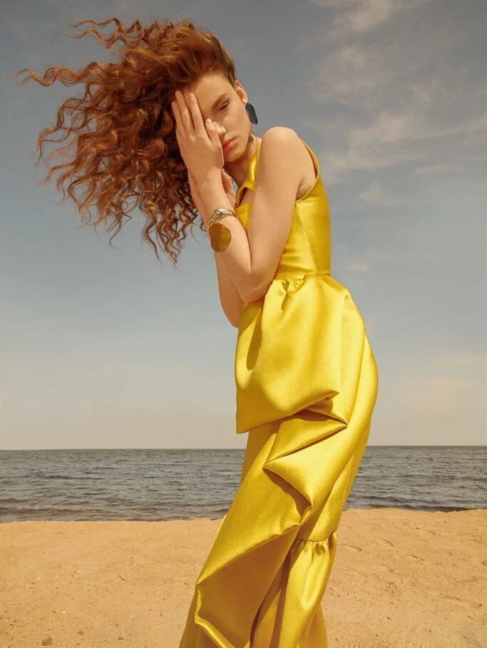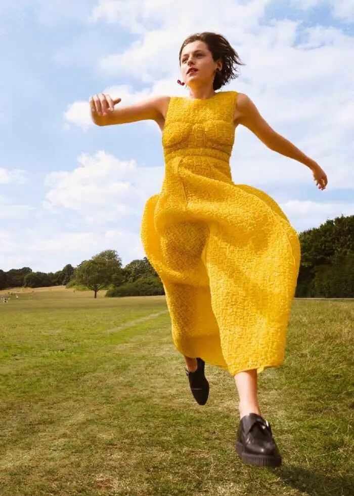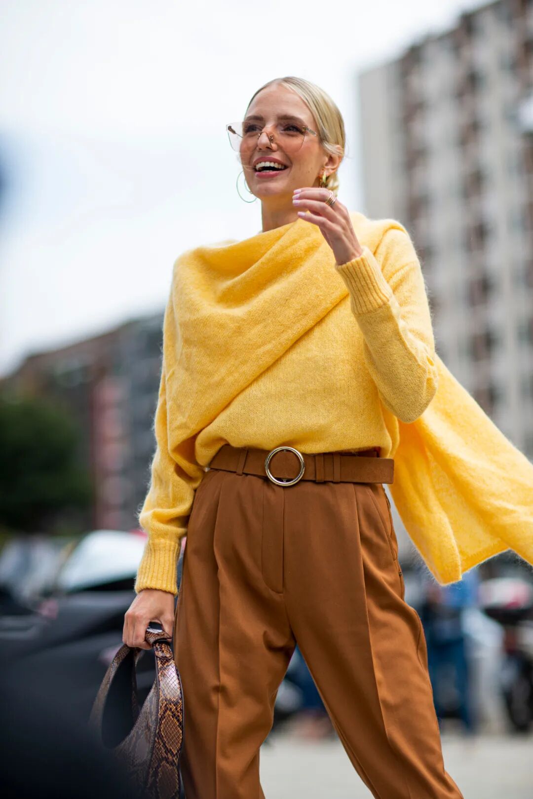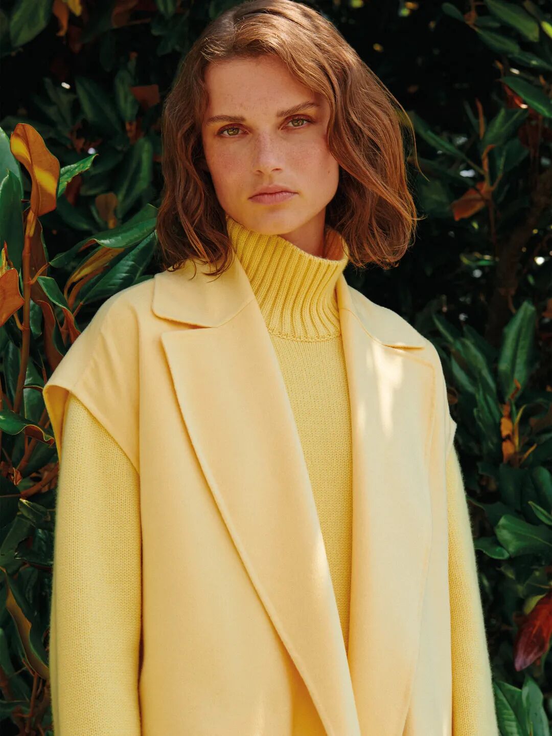 亮丽黄明亮快活,洋溢着活力,很像是把太阳能量注入了暖黄色调里面,让人想到春天的暖风。这个充满生机的色彩,真的很适合2021年初始的现在。虽然室外还是冰天雪地,但是这个色彩就能把人瞬间带到阳春三月的田野里撒欢,去七月夏天的海边冲浪。 看到它,就像感受到了春日的微风抚摸在肌肤上的触感,暖洋洋的。这种明度很高的黄色,其实是属于非常显白的色彩。因为光线照到它上面会自动折射到面部,就像给脸打了一层高光。