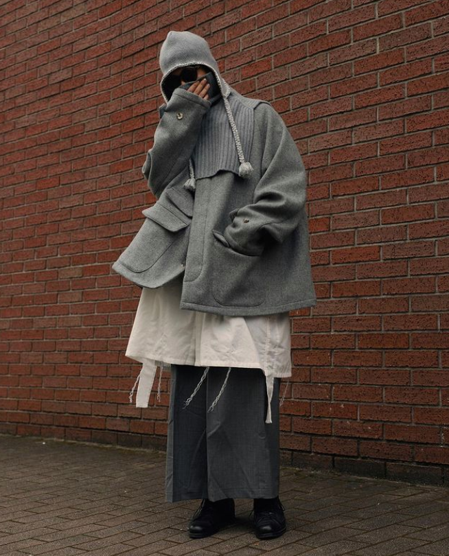 因为衣服件数和层次较多,本来就易显臃肿,若再配上修身又版型松垮的外套,肉眼看起来能胖10斤!所以 oversize,版型硬朗显瘦的大衣会更适合。
