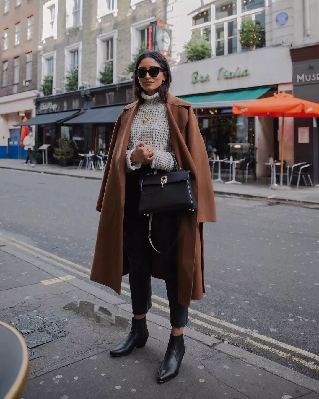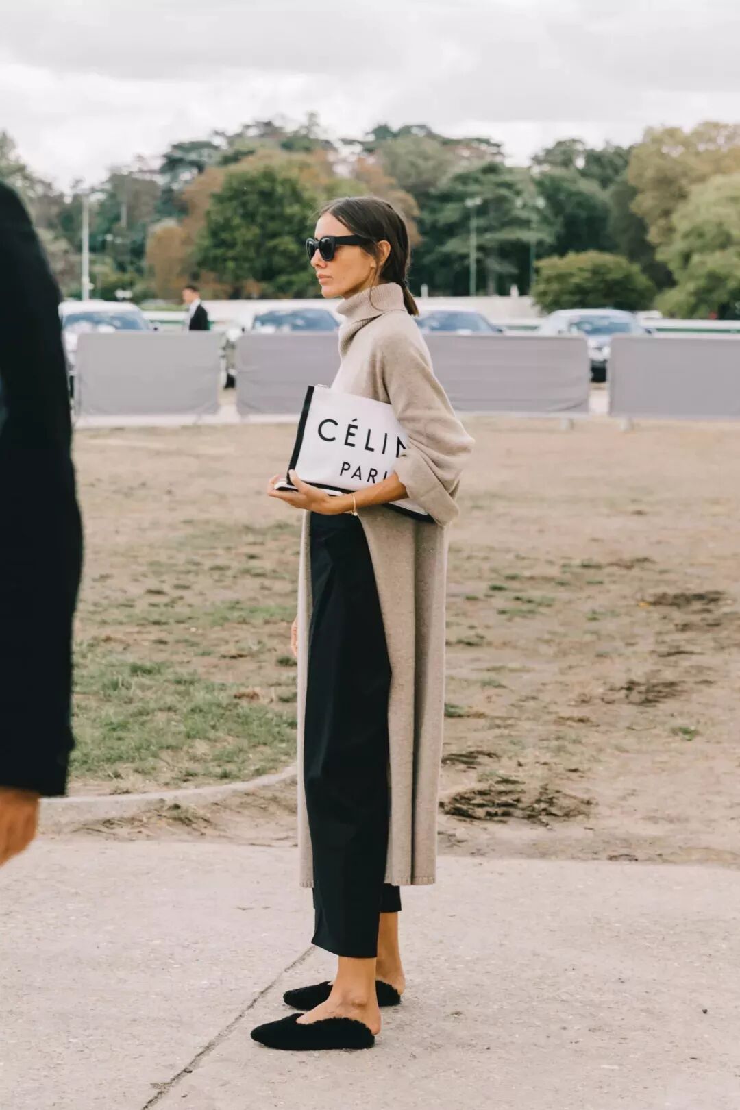 上短下长对于很多女生都能轻松get,而且十分日常实用,九分长大衣+高腰小脚裤,或是九分毛衣裙混搭烟管裤,营造俩件一起穿的新潮感,稍微露出一点裤脚边,造型和保暖力同时get!丝毫没有一点违和的气息,!日常又十分显高级!