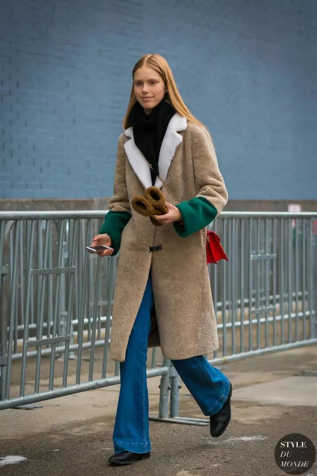 羊羔毛大衣混搭高腰喇叭裤,大衣H版对于梨形身材绝对够友好,视觉上还可以化解羊羔毛大衣的厚重感,长度刚好遮到膝盖部分,气质又显腿长!小个子女生还不快get?