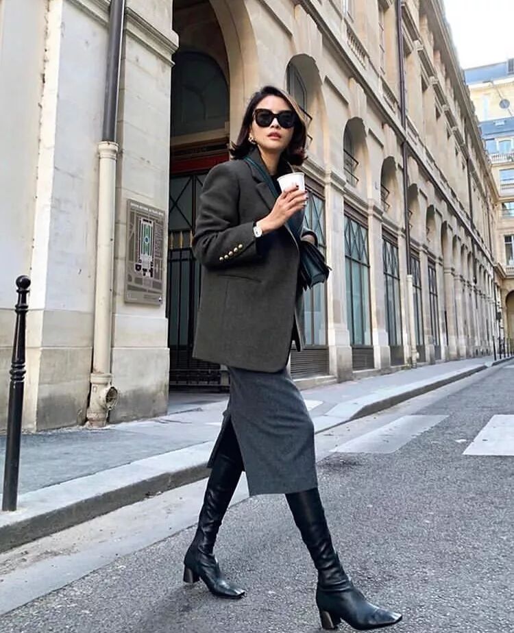 毛呢短外套成套穿,整体统一,又能化繁为简,不需要过多修饰就能穿出French chic的知性与高级。北方妹子外搭oversized大衣或是长外套,时髦倍增!