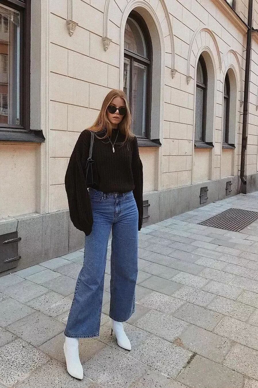 今冬都买羽绒服了吗?短款混搭高腰牛仔裤+切尔西短靴,牛仔裤略带几分小脚的设计,化解羽绒服的厚重感,满满的英伦范儿,休闲又显精致。