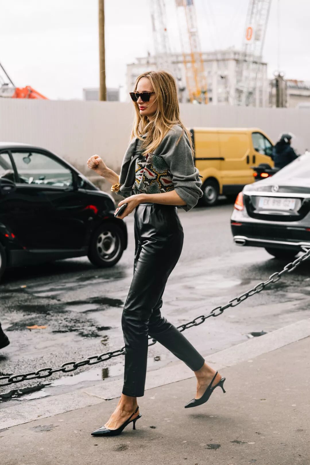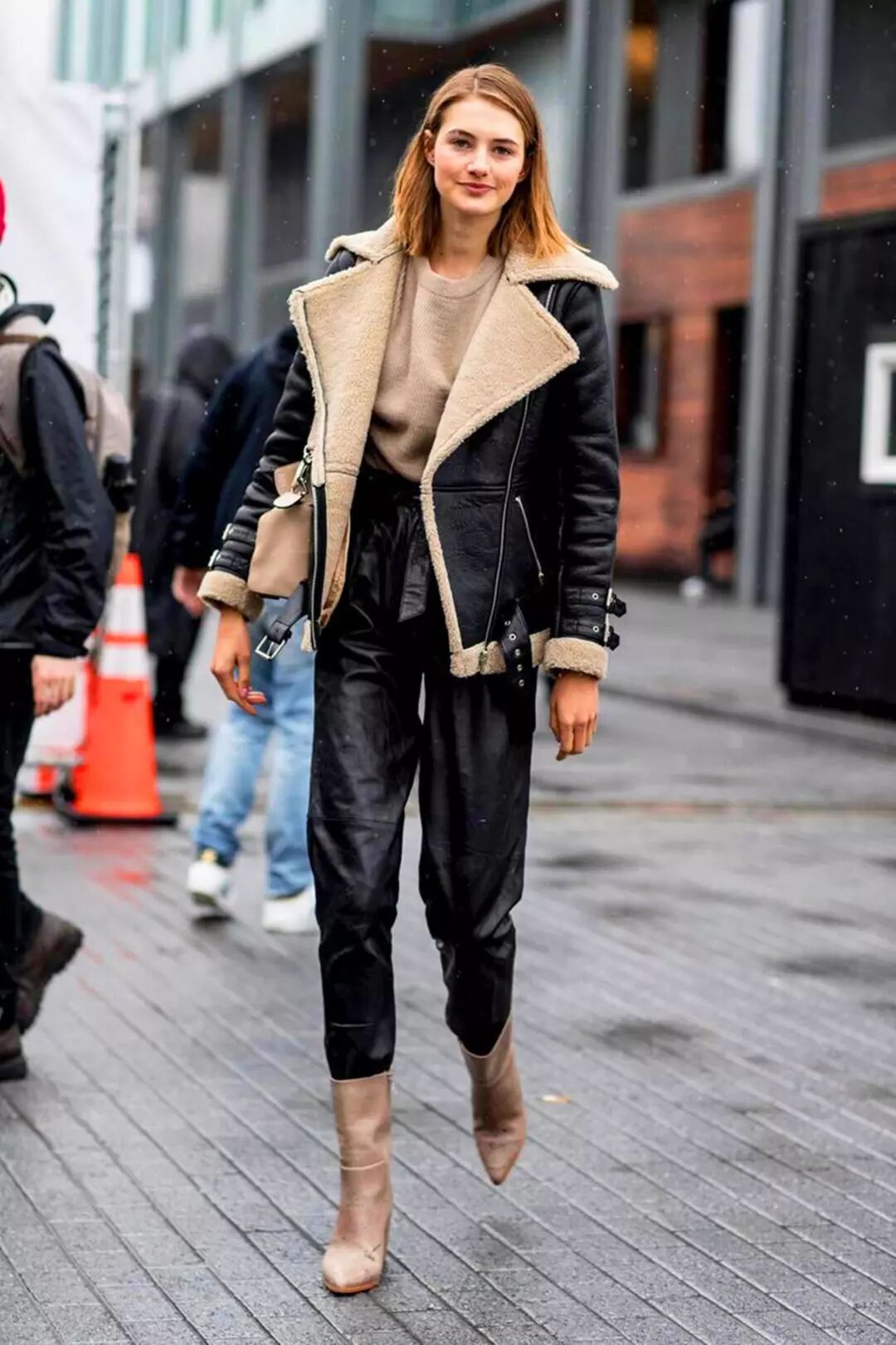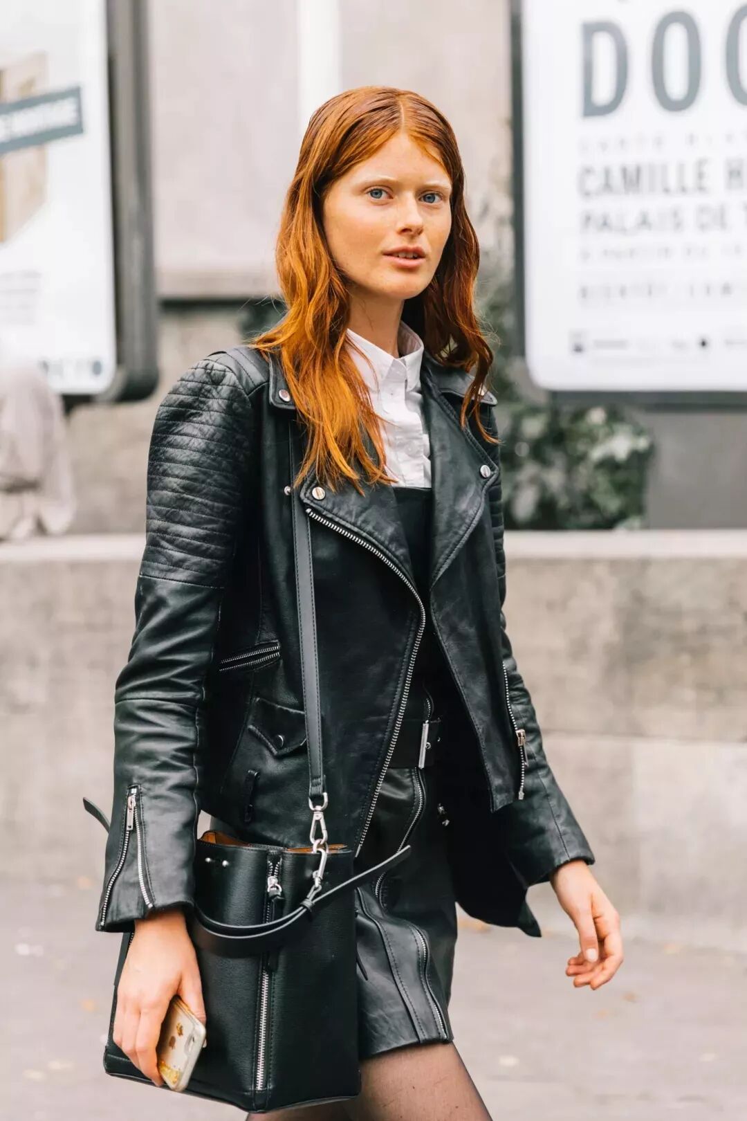 想要穿出几分帅气和雅痞,短皮衣+半裙,叠穿白色衬衫或是小高领,酷潮又中性风十足,街拍感超Max。