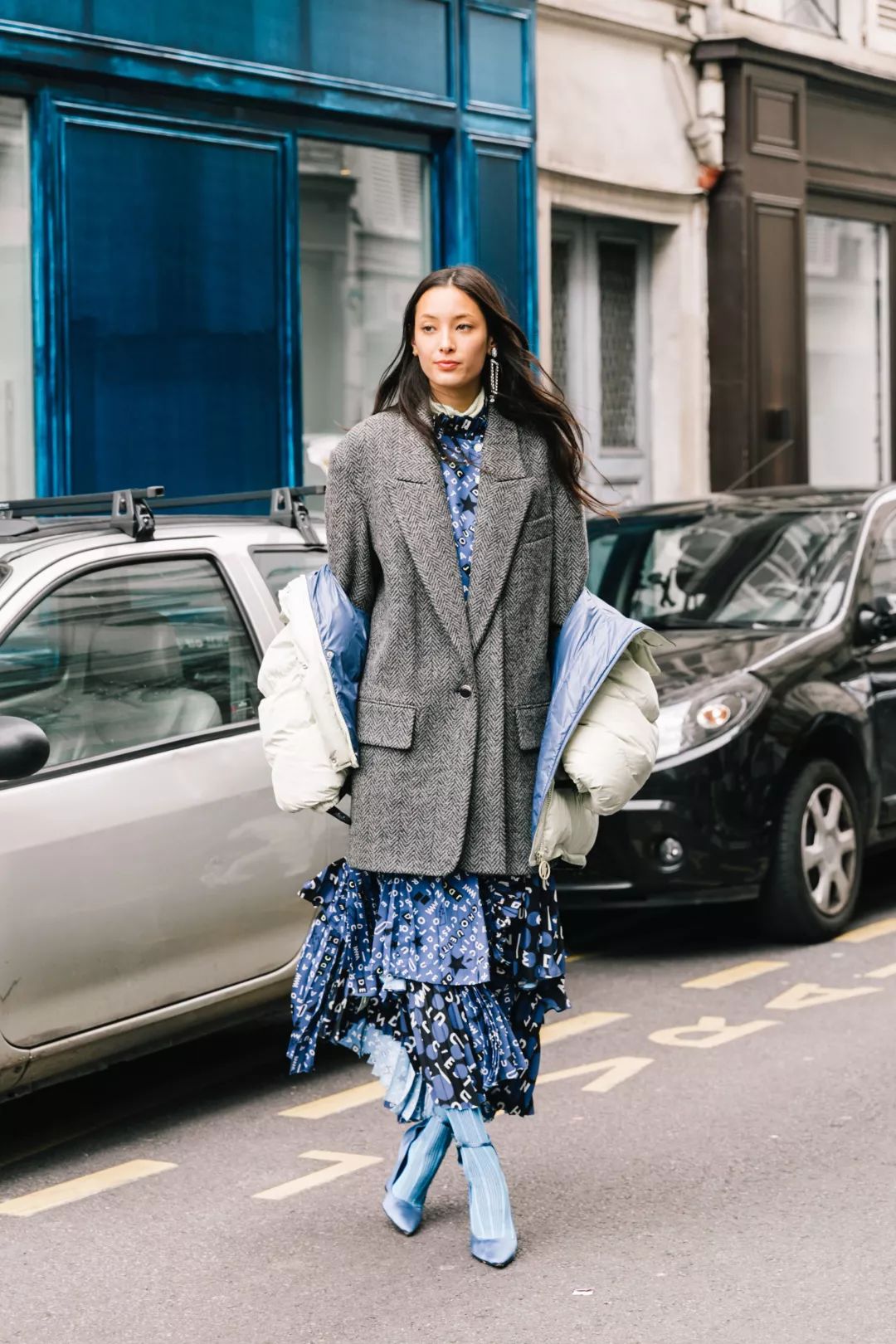 很好的削弱秋冬外套或大衣带来的臃肿感!短棉服+高腰裤,或是毛衣叠穿碎花裙,都超精致有型的,不光时髦还格外显瘦!