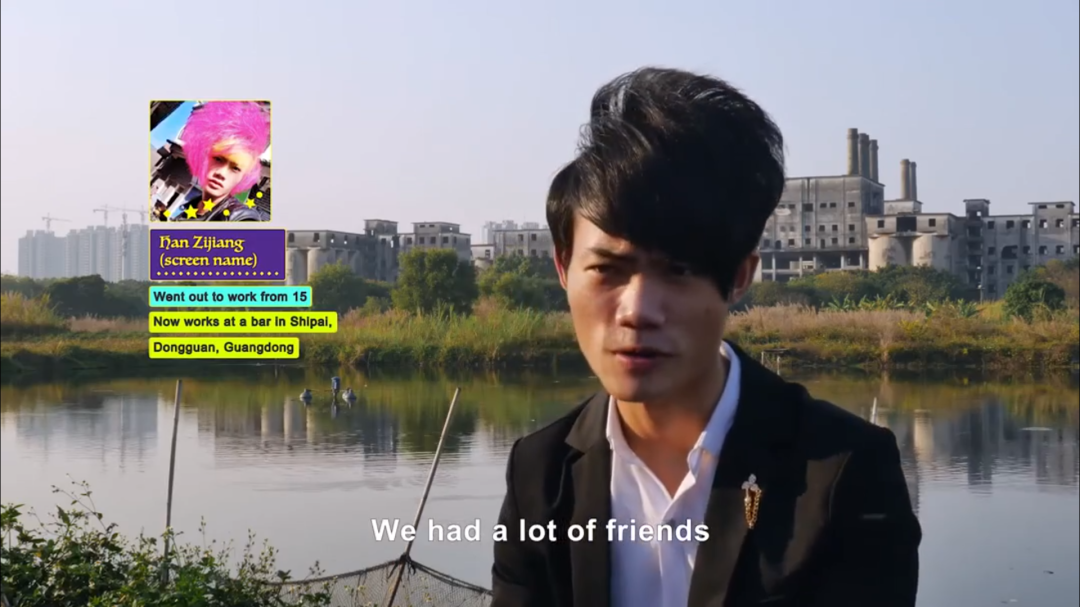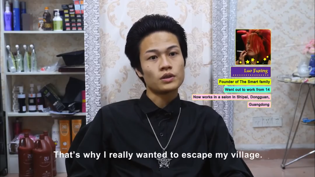 对于经历过杀马特风潮或曾经崇拜杀马特的人,大概都不会想到,杀马特不是视觉系在中国本土的美学分支、也不是为了成为网红的哗众取宠者。李一凡导演告诉我们:杀马特是一群来自中西部、未成年、低学历的农民工或农民工二代。这是一个不常被人们看到的阶级,自然也就没人会理解杀马特对这种发型的喜爱、甚至痴迷。发型就像是杀马特识别彼此的身份证,而这张身份证,「极致」是唯一的标准。发型烫得越高,回头率就越高;发色染得多样,吸引力则越强。如同孔雀般的吸引方式是杀马特统一奉行的原则,即使杀马特之间互有摩擦,发生斗殴,他们也绝不会碰到别人的头发——这是底线。杀马特多是在工厂流水线上工作的小工,年仅十几岁的他们,大多因为家庭生计不得不早早出来打工,心智与生理都尚未成熟的他们早早地被钉在了流水线上,每天数十小时地重复同一个动作,不仅不能自由活动,甚至就连上厕所也要报告。机械单一的流水线和单调重复的工厂噪音让人渐渐变成一台机器,在没有变成杀马特之前,他们谈起熬人的工作时长,被克扣到29块钱的半年份工资,甚至听闻工友的残废、死亡,都毫无波澜。有人说:“进厂真的很孤独啊,你吃饭、上班、睡觉都是一个人,基本上加班也是你一个人孤零零的坐在那里……太孤独了,玩杀马特至少有人会看你,还有人会骂你几句,骂几句也好啊,也是有人跟自己说话了。”还有人说:“那个时候我特别的压抑,也有上网去查自杀的方法。我老妈别的也不管,就让我上班挣钱然后寄回家里,她说为什么需要休息,你就挣钱挣钱挣钱……那时候工厂有一个人,染了好几种颜色的头发,穿了铆钉的靴子,虽然我们不是很熟,但我能感受得到她们就是自由的、她们就是个性的……慢慢接触到他们之后,我的人生要发生一些改变,我的人生要我来做主才行,哪怕是错的。”即使已经过去差不多十年之久,他们在描述自己变成杀马特的那一刻,也无法控制住语气里的兴奋和眼里的闪光。成为了杀马特的男孩女孩第一次走上街,享受着平常不会接受到的路人的眼光(无论善意或恶意),第一次被家人以外的陌生人关心、夸奖,他们在离家后第一次找到了有归属感的地方。