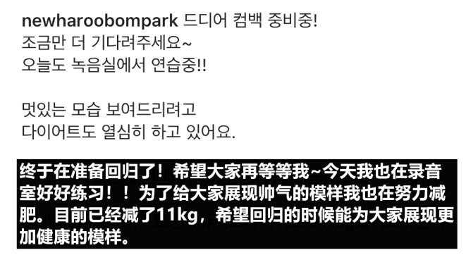 继去年朴春出席第56届韩国电影大钟奖后,大家已经好久没看到她正式展开活动了吧?昨天早上6点左右,2NE1出身歌手朴春连发两条INS动态,久违地为我们传达了她正在准备回归和减肥成功的消息。朴春发文称自己正在努力准备回归和减肥,目前已经70kg减到了59kg,瘦了11kg,希望回归的时候能为粉丝们展现更加健康的模样。随后朴春还公开了一张自己减肥前后的对比图,并发文提到了自己在去年大钟奖颁奖典礼时的模样和决定减肥的原因。朴春称自己是因为患有ADD(成人注意力缺失症)无法控制食欲所以发胖。如今病症有所缓解,体重也慢慢的减了下来。在这条动态下面,朴春公开了一则自己在录音室演唱歌曲《Wanna go back》的视频,视频中的她身材纤瘦、状态满分,还附上录音为粉丝们送来问候。看来这是打算好好搞事业,要回归了?提到朴春就不免为2NE1惋惜,这个昔日爆红女团如今已经解散,作为队长朴春则是负闻缠身数度口碑跌入谷底,不知道还有没有机会重新出发?提到朴春的名字很多人可能还比较陌生,但是说起韩国组合2NE1大概无人不晓。2009年出道的2NE1和以往甜美可爱的女团不同,四个风格迥异的少女用“叛逆”“大胆”的标签让她们成了韩流风潮中的一道风景线。一首洗脑神曲《我最红》红遍亚洲,甚至媲美同公司的Bigbang的许多大爆作品。2009年7月1日,2NE1发表首张迷你专辑主打歌《I Don’t Care》,连续五周《音乐银行》第一,连续三周《人气歌谣》第一,彼时2NE1出道仅28天。丝毫不输同时期的少女时代和WonderGirls,是YG集团的第一女团。作为组合主唱的朴春,在舞台上魅力惊人。美国留学的朴春从18岁就励志做歌手,终于在25岁跟随团体出道,因超强的实力和甜美外形,出道后的朴春迅速收获了一票粉丝。朴春声线欧美,被网友送外号“铁肺”,一度是封神般的存在,同门艺人们对她的评价也很高。权志龙曾赞叹:“无论什么歌有了朴春的声音就变得很好听。”太阳也表示,朴春的声音一定是最好的。实力强劲的朴春外形同样女神,有着柔和的下颌线与饱满的苹果肌十分甜美动人。大卧蚕和烟熏妆是朴春的标配妆容,直到今天朴春仍在沿用。在当年,裸妆还没有那么流行的时候,朴春就以夸张的眼线和浓黑的睫毛引领美妆界时髦趋势。提到腿精大家都会想到宣美,但在宣美之前,网友们都把朴春的长腿评为女团里最亮眼的腿型,绝对的腿精本精。朴春的长相加上她的妆容给人第一印象是比较高冷,朴春虽然解释自己其实很好相处,不过网友们好像不太买账。但当大家看到节目中的朴春可以刚睡醒就毫无顾忌的开始掏出藏在枕头下的布丁开吃时,网友纷纷表示这是什么有趣的女孩子啊。2016年11月25日,据韩国媒体报道,2NE1正式解散,朴春合约到期决定不续约。因为负面让朴春暂停了所有的演绎工作,后续的发展也并没有往好的方向,就这样朴春跌下了神坛,组合也完全解散。单枪匹马搞事业的她,最近在热门韩综《Queendom》中复出,虽然朴春因为身体原因有些臃肿,但开口仍是惊艳。《Queendom》是一档韩国女团竞演节目,节目让6组大势女团展开舞台对决,并在同天同时段同时发布单曲,通过播放量选出最后的冠军。朴春以一人之力应战5个当红女团,但丝毫没在怕的。一个人挑大梁照样slay全场,无论是高音还是舞蹈都能轻松驾驭~不夸张的说,朴春每次开口都能引得台下观众和女团后辈们惊呼连连。这开口跪水平不愧是曾经的女团实力第一人。《Queendom》最后一场决赛舞台上,朴春用充满回忆的舞台把观众带到了2015年的MAMA——2NE1最后的舞台。朴春先是晒出2NE1标志性的四色麦,并复刻了自己当年的红发造型,许多网友都以为2NE1真的要重组回归了。尽管最后只是朴春和3位造型相似的伴舞完成舞台,但还是给二代女团粉留下了一个美好的期待。出道仅1年的时间,朴春的星途就开始颠簸。2010年,朴春被举报试图将违禁药品带入韩国,当时负责此案的检察官采取了免于立案的举措。时隔4年后该丑闻被媒体曝出,在韩国网络上掀起了轩然大波。据爆料的媒体称,朴春在2010年10月从国外购买了80多片安非他命并试图通过国际快递带入国内。安非他命是一种强力中枢神经兴奋剂,在韩国属于违禁药物。朴春对此也心知肚明,收货信息填写了别人的地址和名字来掩人耳目。但这批药物抵达仁川国际机场后就被海关工作人员查出,并通知检察院立案调查,没多久就查出了这批违禁药品的实际购买人是朴春。而那一阵的朴春确实很奇怪,种种举动都有种疑似非法使用药物的嫌疑。有时候朴春会突然打开直播,并在直播中进行一些迷惑行为。有一次,朴春素颜开始了直播,仅穿一个黑色背心,还对着镜头抖动胸部,让网友不仅怀疑传闻的真实性。不过后来朴春所属社YG出面解释,表示那些药物是朴春在美国接受治疗时服用的合法处方药,朴春则不清楚那些药物在韩国属于违禁药物。但“朴春吸毒”的传闻持续发酵,不得已的朴春,只能从当时参加的节目《Roommate》里下车。这之后很久,都没有2NE1的团体活动和朴春的个人活动。2NE1的声誉遭到严重打击,也为日后2NE1的解散埋下导火索。自那之后,朴春便屡出负闻。2018年,综艺《PD手册》突然重次提朴春“走私毒品”的事件,伴随的还有关于她年龄的争议。根据节目里公开的信息,2010年时朴春是31岁,也就是说朴春是1979年出生,这和官方资料的1984年生差了5