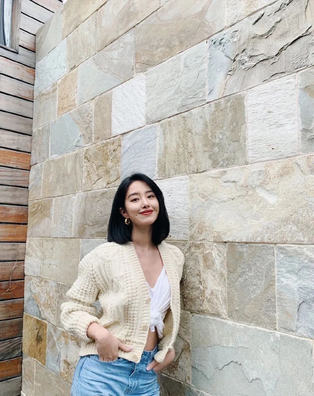 杨采钰的衣橱里永远都有一件温暖软糯的针织衫。
