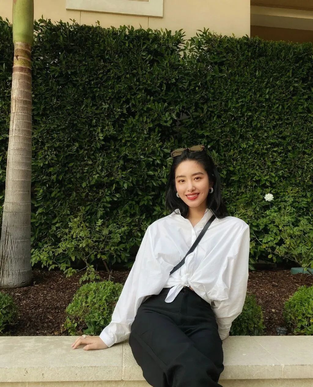 打结穿法让Oversize衬衫不再累赘,简约高级黑白撞色非常的赫本风。