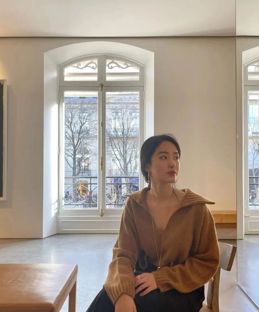 这套舒适干练的法式穿搭让人时刻能感受到梁思申的精锐气场,还藏着几分巩俐的影子。