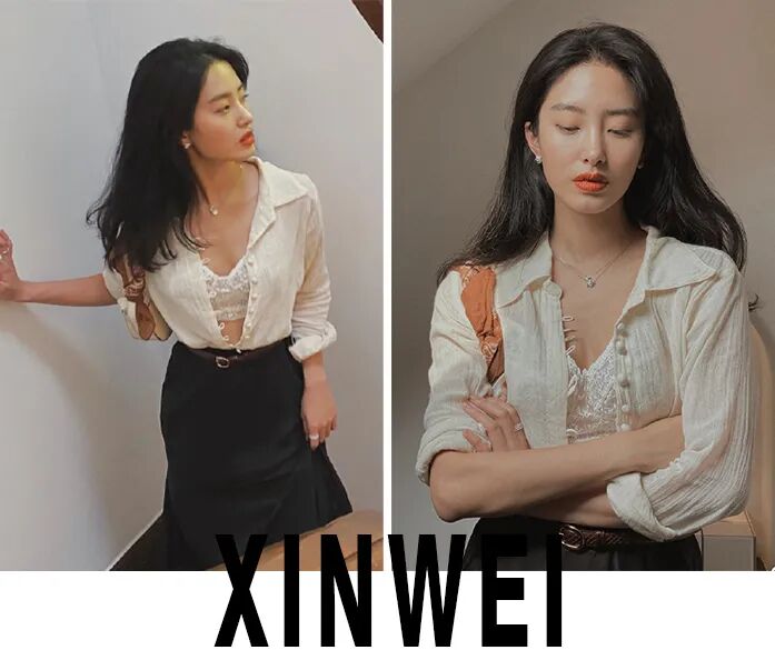 若隐若现的丝质面料,不系扣的穿搭法则自然随性,搭配高腰裙、腋下包,随便哪个都踩在审美点子上。