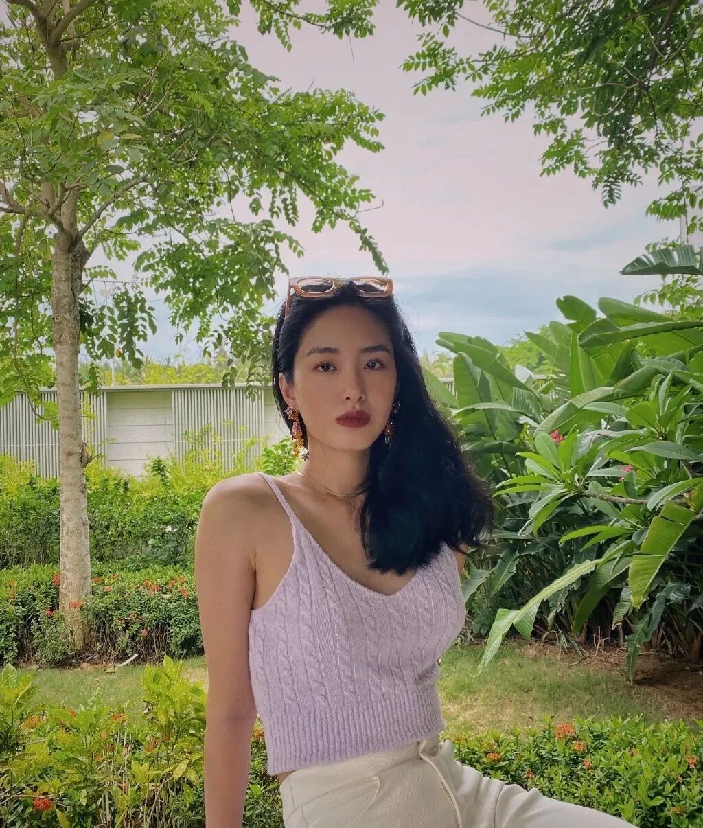 粉色针织吊带露出迷人肩颈线条,会说话的眼神无时无刻不在放电,好想跟小姐姐一起喝杯盐汽水。