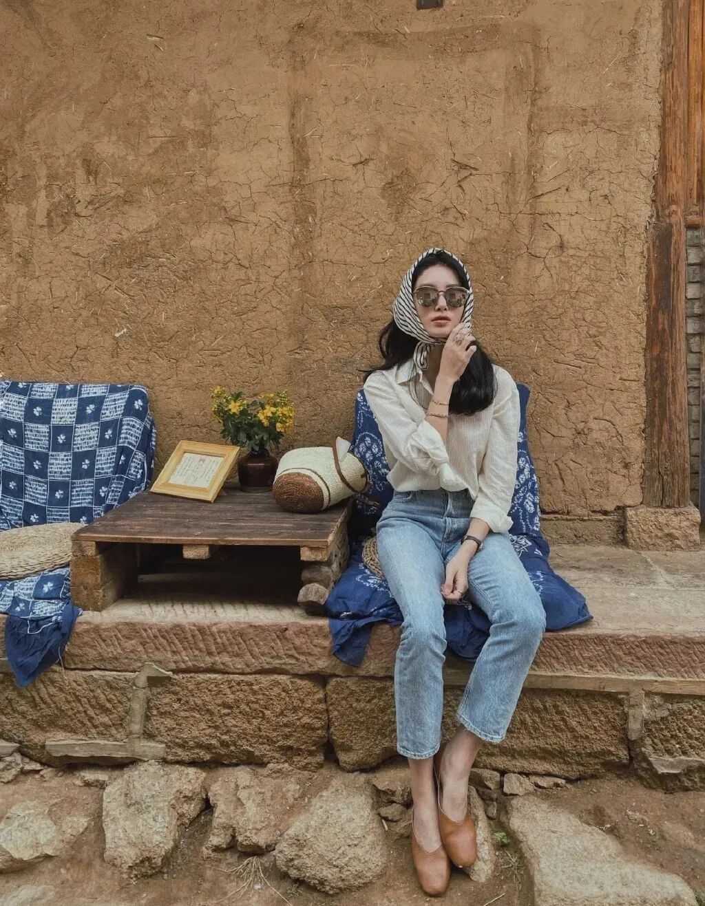 将丝巾围在头顶,瞬间就有法国女郎那味儿了~