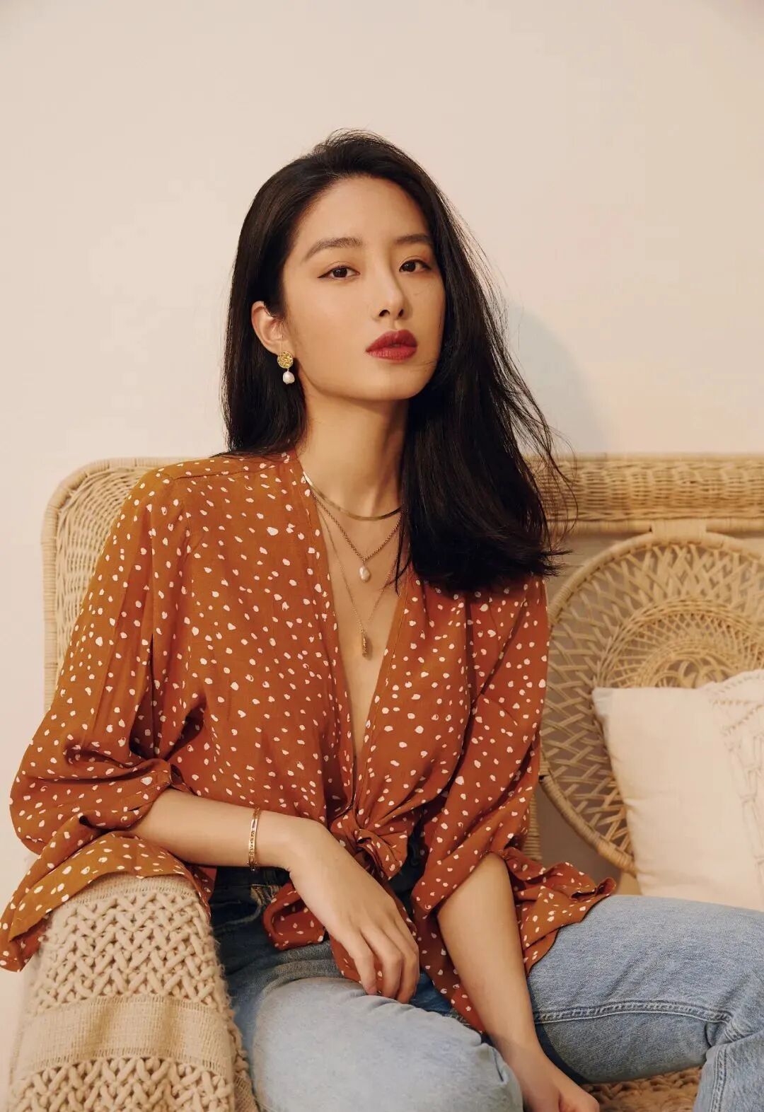 波点元素是打造少女感的标配,搭配一条牛仔裤利落干脆又足够日常。