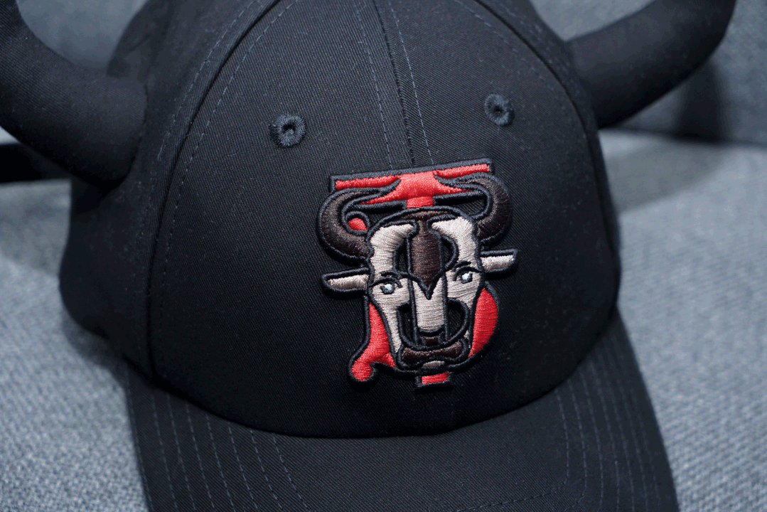 帽子正面的牛头下,隐藏着红色的TB Logo,两个元素很好地融合在一起。