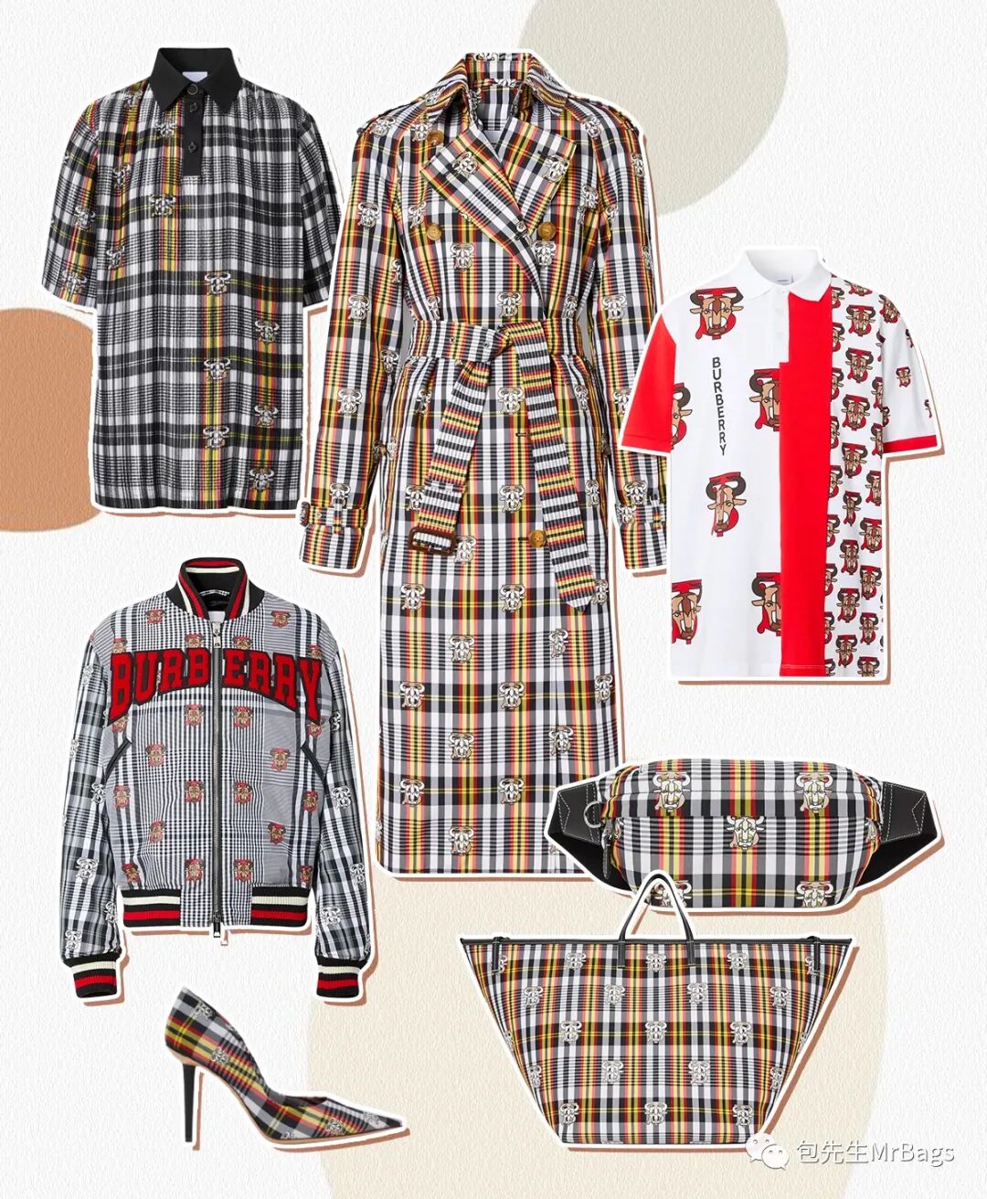除了多色格纹,这次还运用了蒙太奇印花的手法,混搭拼贴了各种不同的图案!