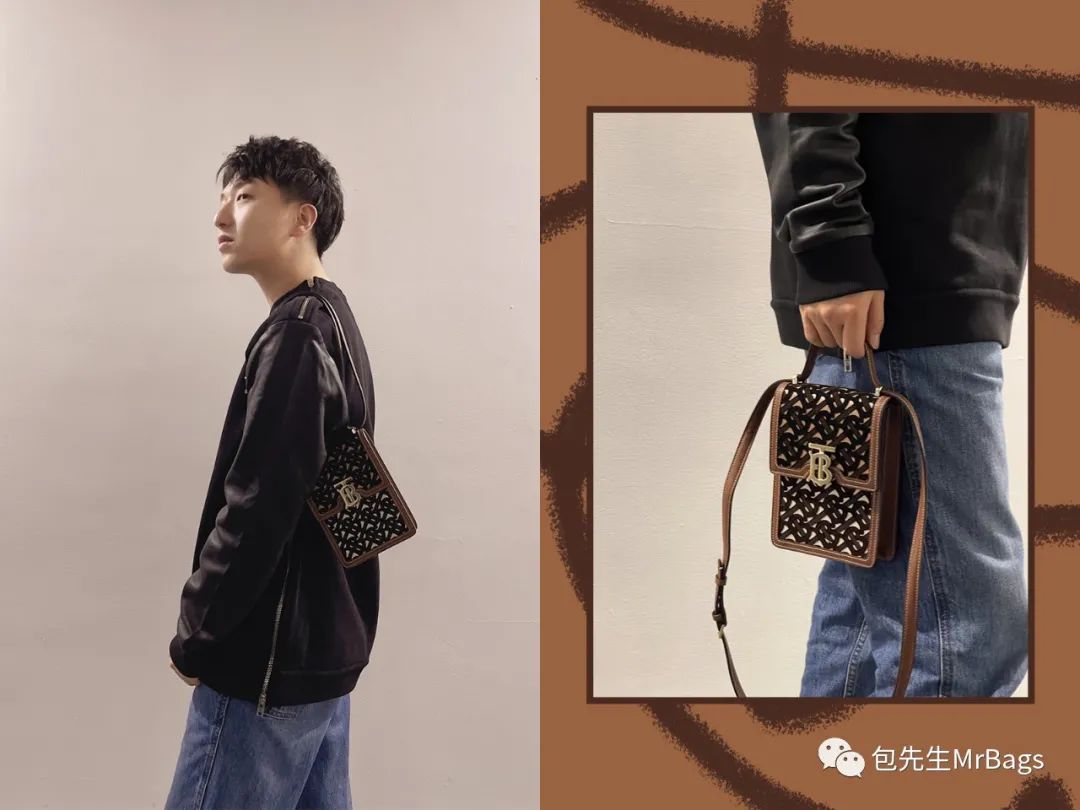 但Robin就不怕,这款包的肩带可以变成小手提模式,手插进兜里一挎,就可以轻轻松松出门了~确实在最近一年里,竖版迷你包特别火。尤其在横向包包比较多的情况下,竖着的设计看上去会更特别。像我这只还是植绒TB Logo的Robin,会更少见一些,有种酷酷的街头感。其实素色的帆布拼皮款式也很好看!风格更轻松随性,带些文艺风的味道。棉质帆布拼皮革Robin参考价格:9,700 CNY其实男生背也很好看,帆布拼接的设计,很有大男孩儿的感觉。