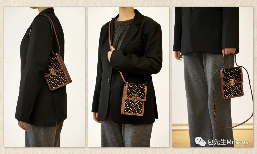 这只竖版小包看上去就很可爱,加上精致醒目的金属TB Logo,非常有辨识度。像我最近换成了比较大的iPhone,很多小包都放不下,但Robin,却能轻松放下两个手机。我也是自己用了之后才发现,Robin的背法真多呀!可以根据自己的需求自由调节很多种不同长度。不仅可以斜挎、肩背,还可以手提,甚至腋下背...尤其最近天冷,经常穿羽绒服。很多小包就特别不方便斜挎。