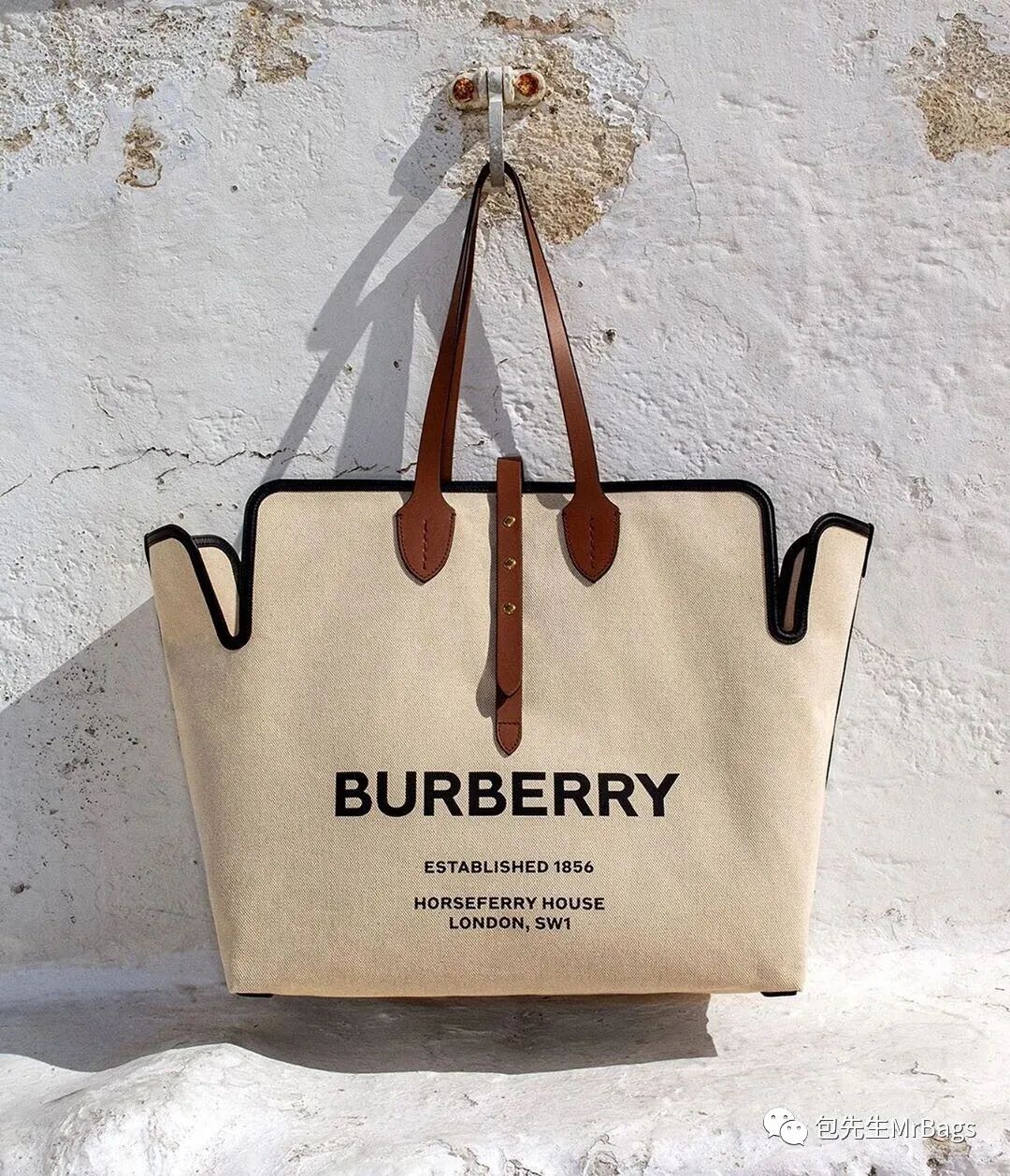 如果喜欢大包的,其实Burberry还有很多好看的托特包。最近两年只要说到托特包,那是肯定离不开Burberry的!大面积的米白色帆布,配上简洁的基础黑、棕色皮质勾边,简单、高级又非常耐看!
