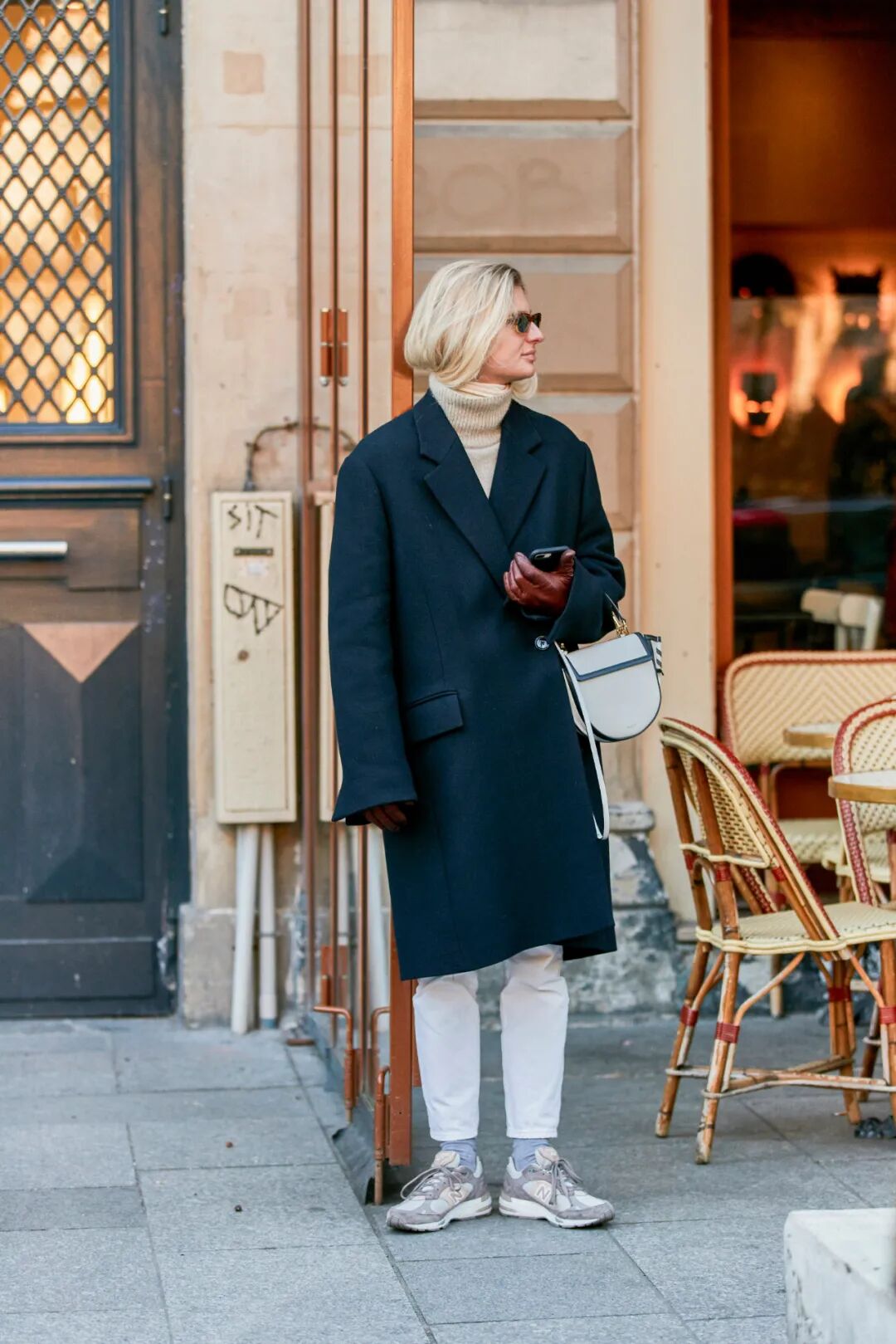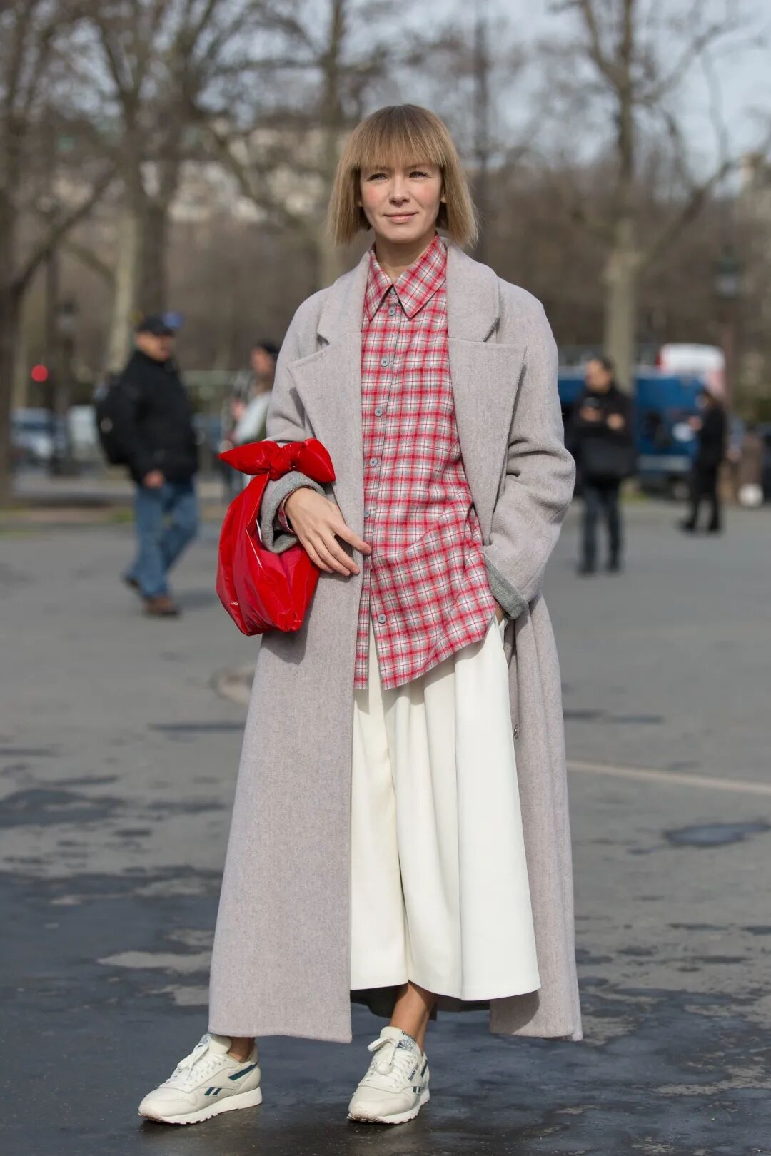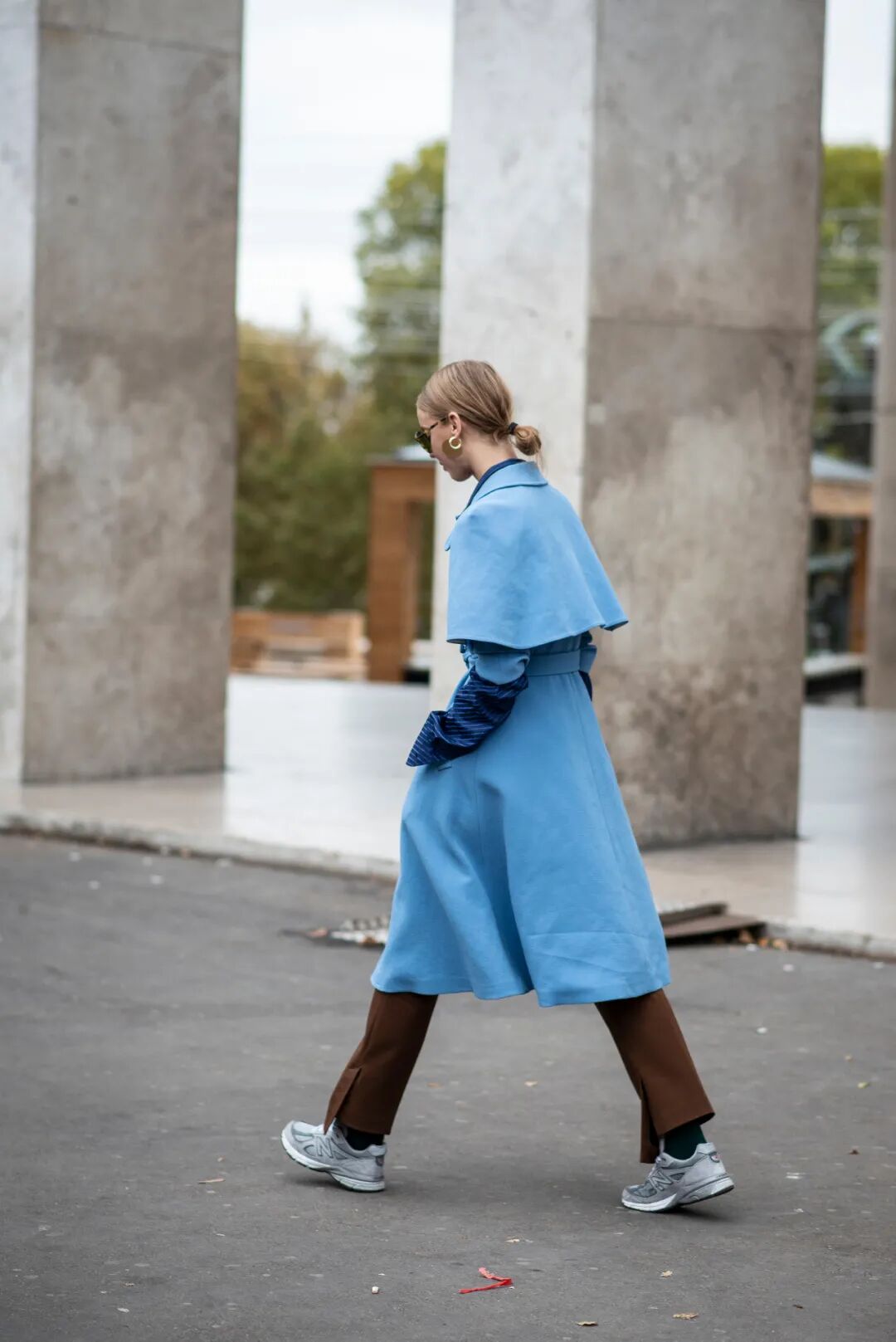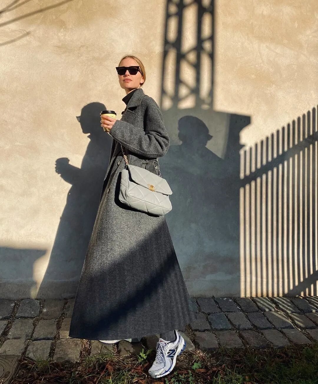 所以,现在该买什么样的鞋子配大衣才算时髦?看看博主们的示范就知道了:一双“破”球鞋!