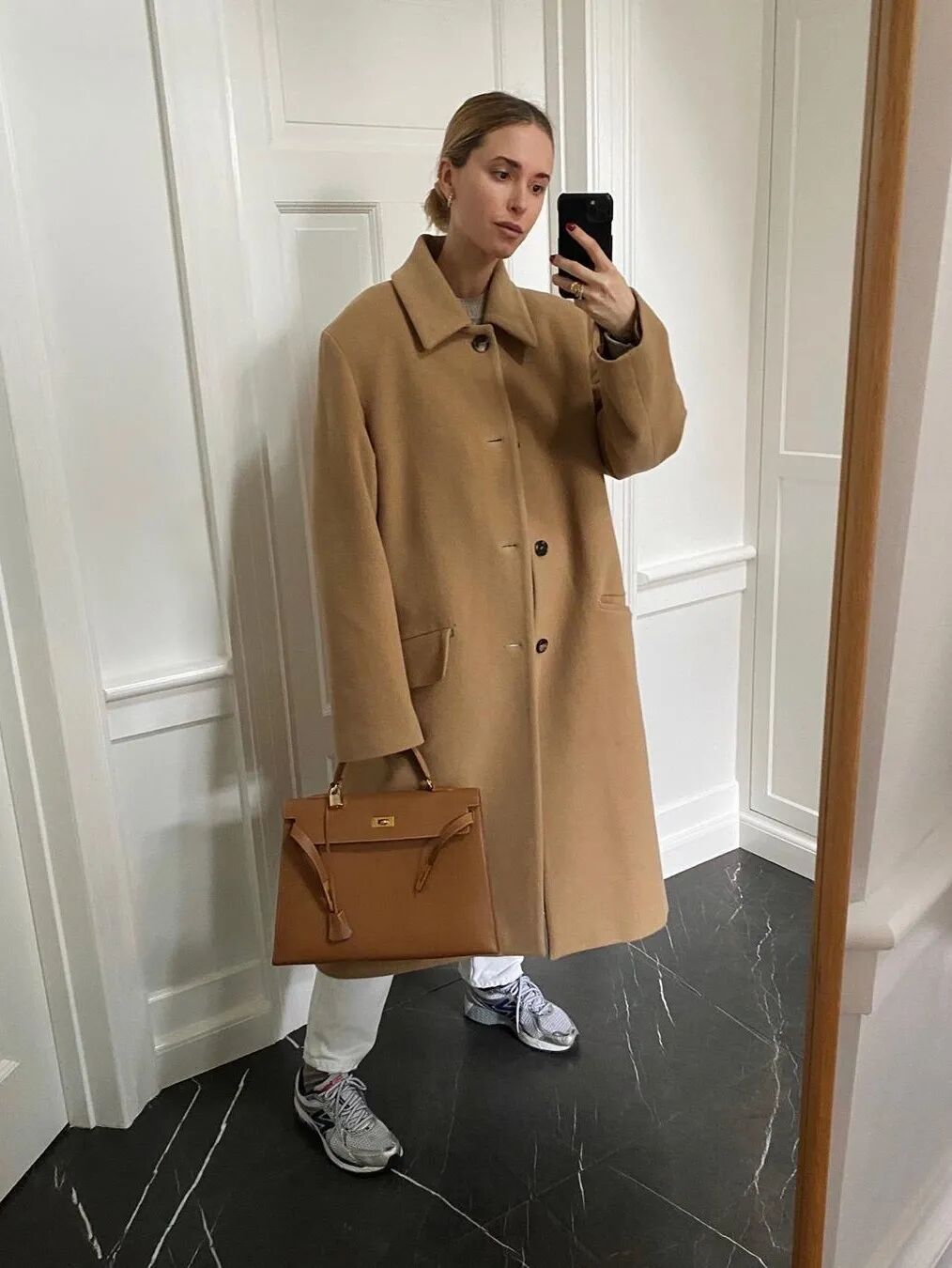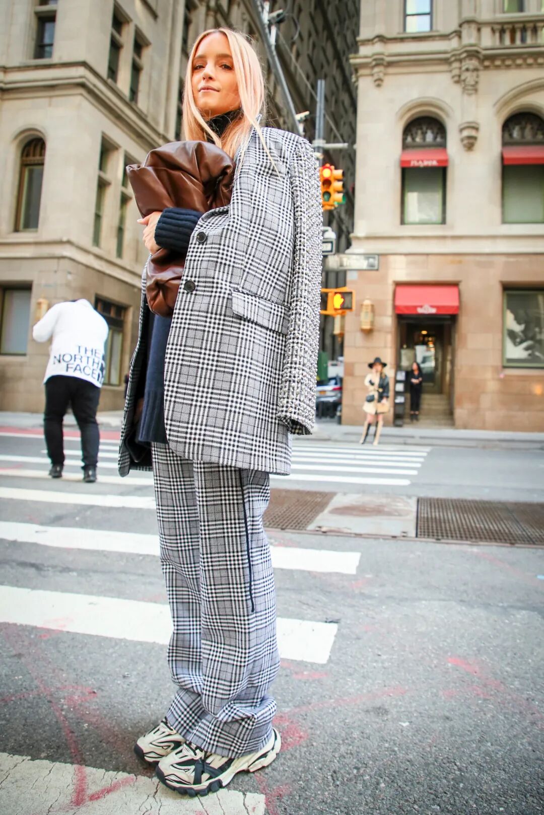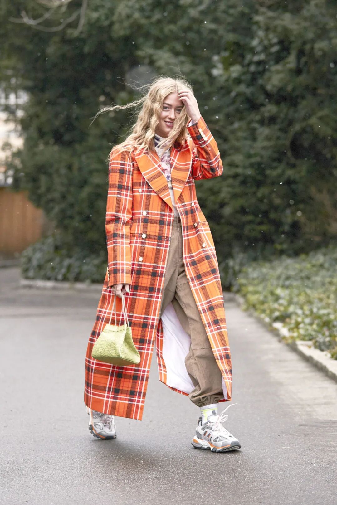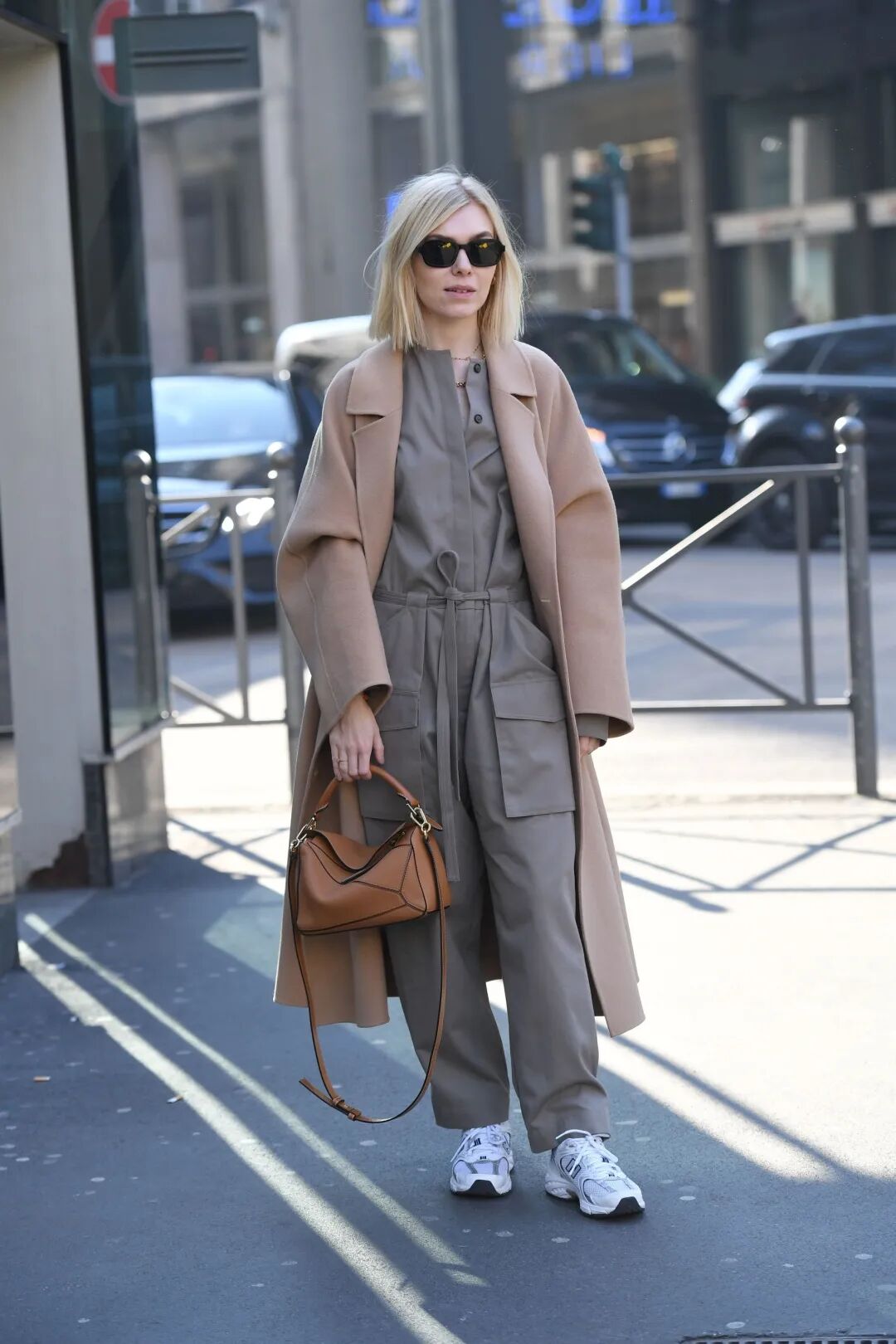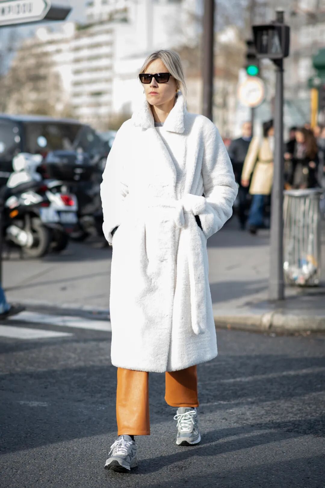 所以,现在该买什么样的鞋子配大衣才算时髦?看看博主们的示范就知道了:一双“破”球鞋!