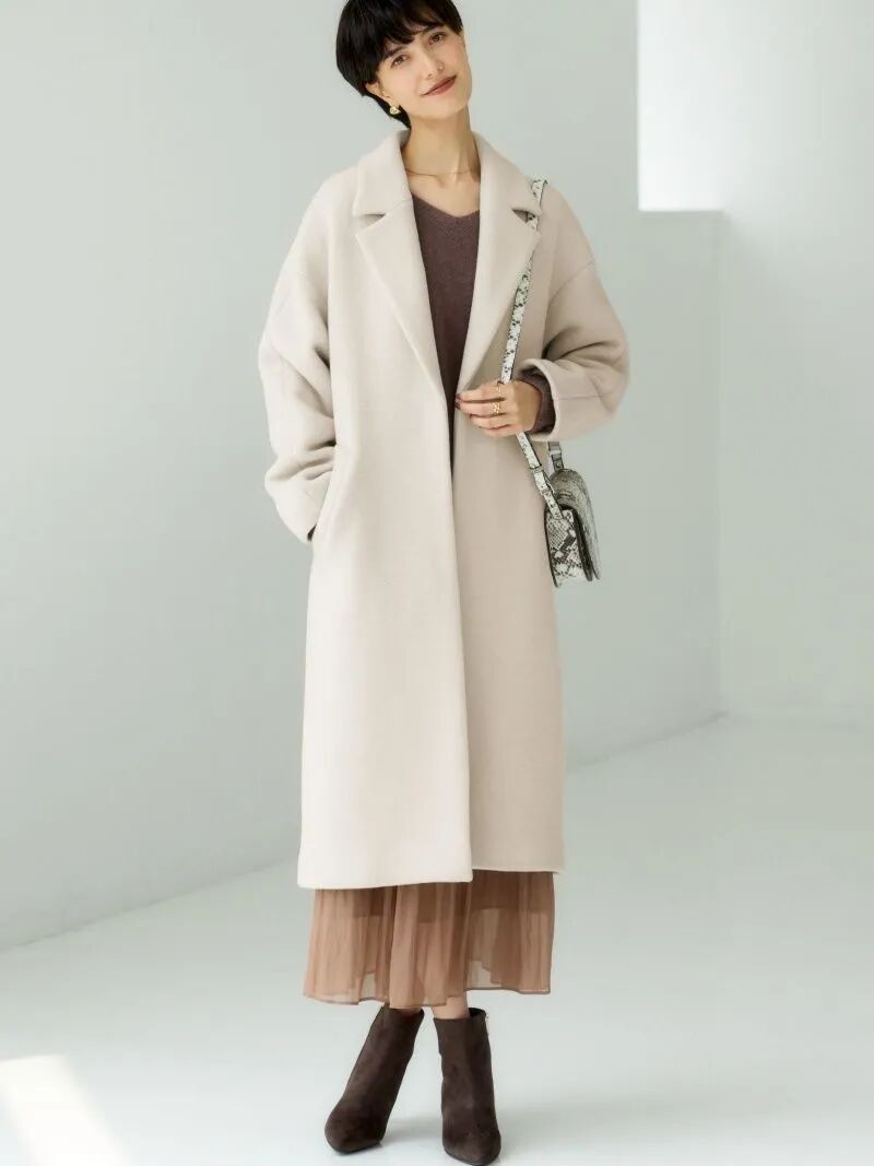 长大衣+裙子堪称冬季最美打开方式。一般来说大衣与内搭的裙子选择同色系最是高级有质感,尤其是这种温柔典雅的奶茶色、燕麦色系,更是将女性的柔美恬静之美演绎得淋漓尽致。