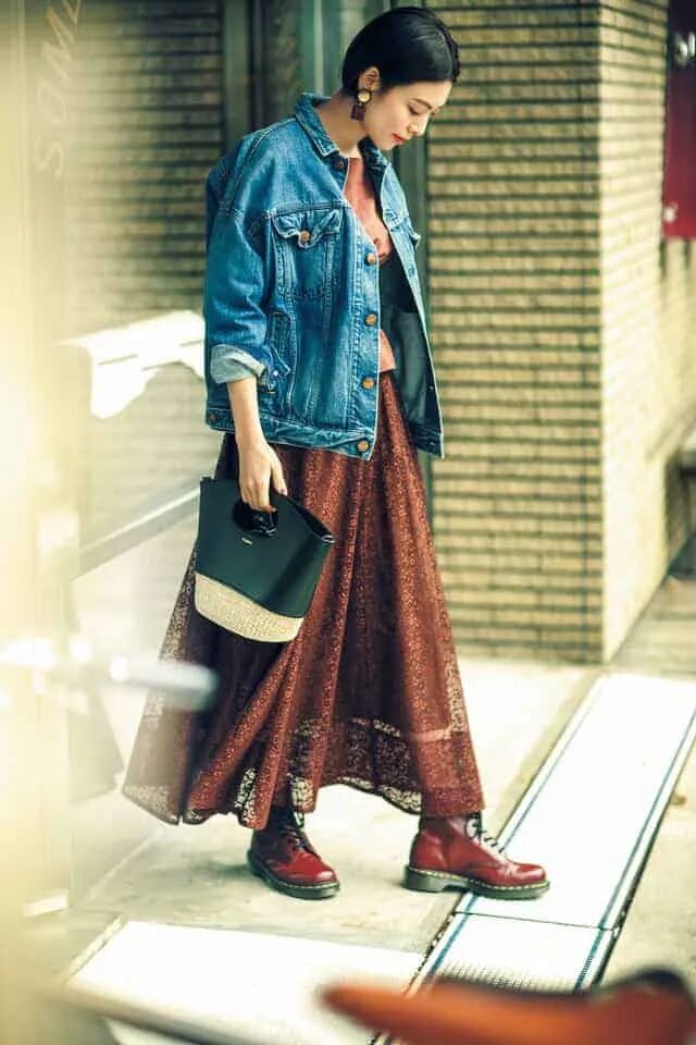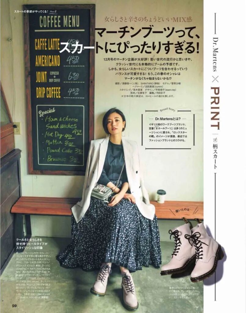 靴子+半裙的组合能让你帅美兼具时髦得全不费劲。作为今年超火的甜酷风、女团风不可缺失的元素,马丁靴搭配裙子穿,不费力的就能catch住人们视线。