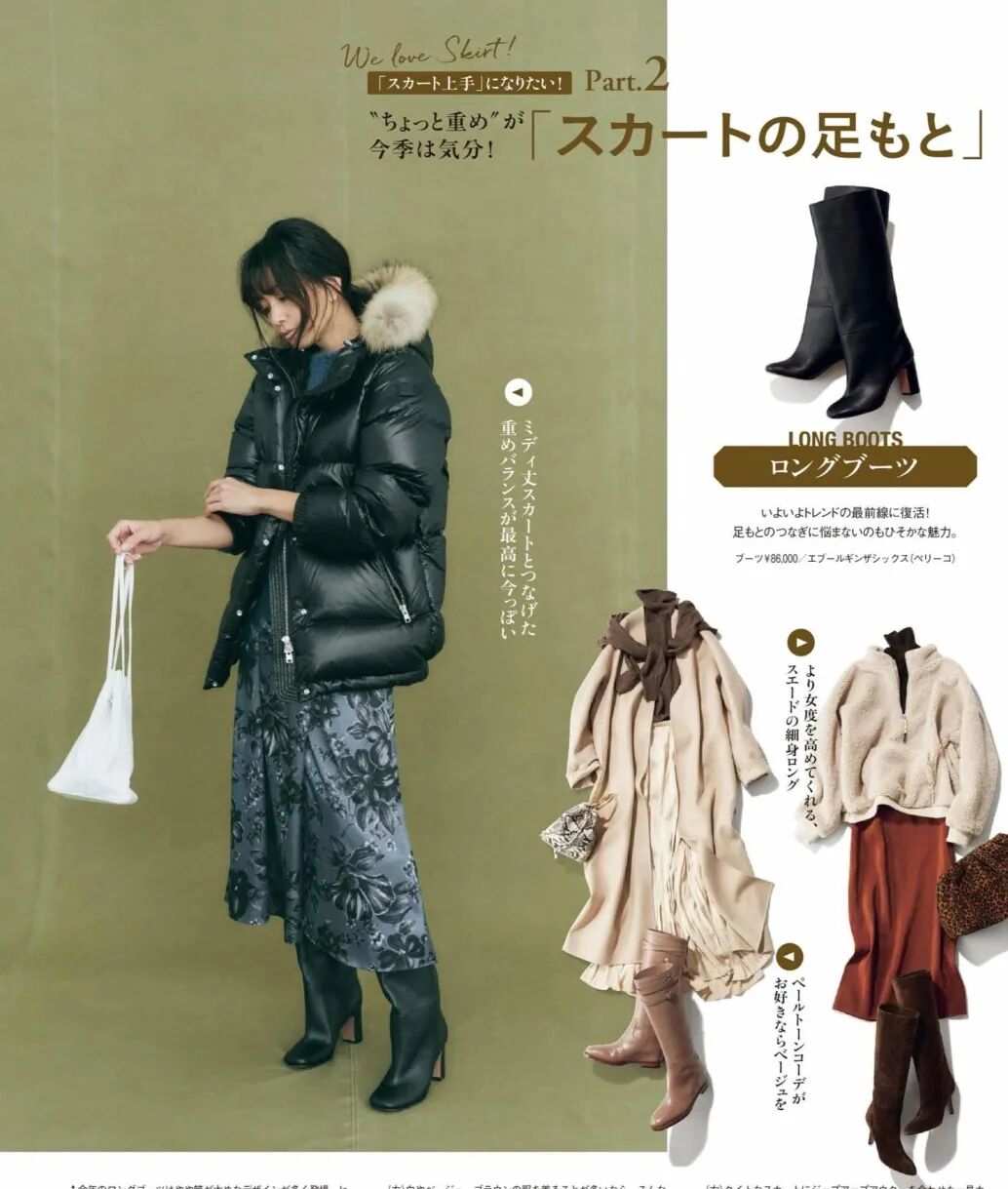 不管长靴还是短靴,靴子和裙子搭配时最好裙摆能盖住靴口,既能保暖还能避免掉裙子的膨胀感。