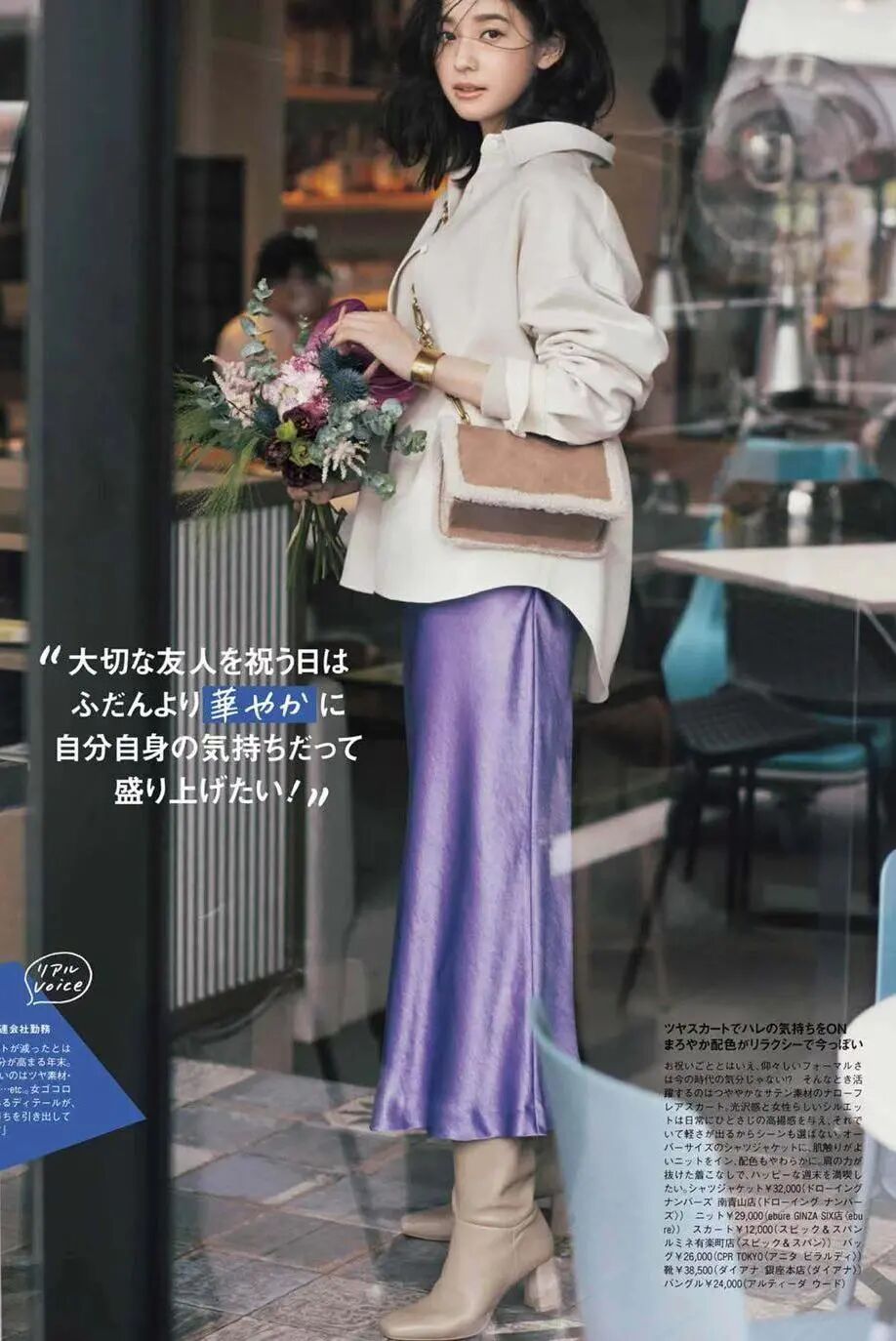 柔和的缎面裙给人的感觉很美好,搭运动鞋活力且温柔,上半身搭配不仅不会臃肿,反而很有女人味。