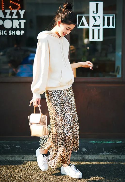 A字型裙摆线条流畅,遮胯藏肉,是各种身材女生的好朋友。其中百褶裙最飘逸浪漫,作为卫衣的最强助力,这一套显瘦又有女人味,冬天穿太浪漫了。