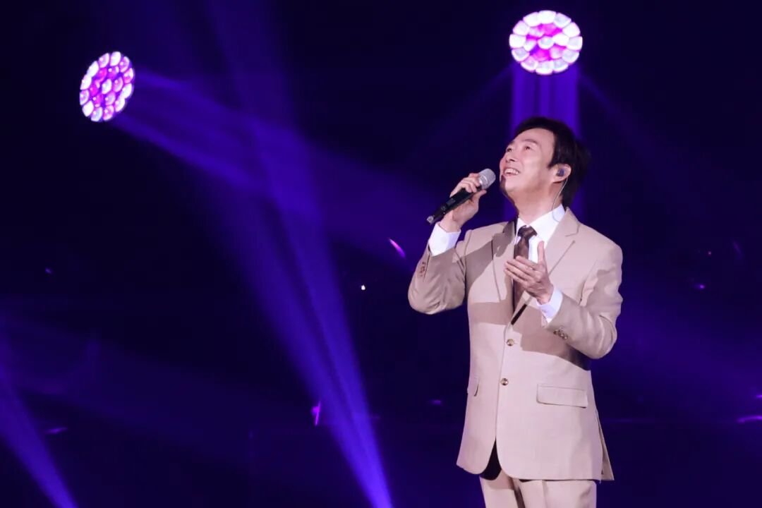 加上那标志性的45度角仰头,以及将右手举到脸旁的老牌姿势,常有人戏称他是“歌坛老干部”。
