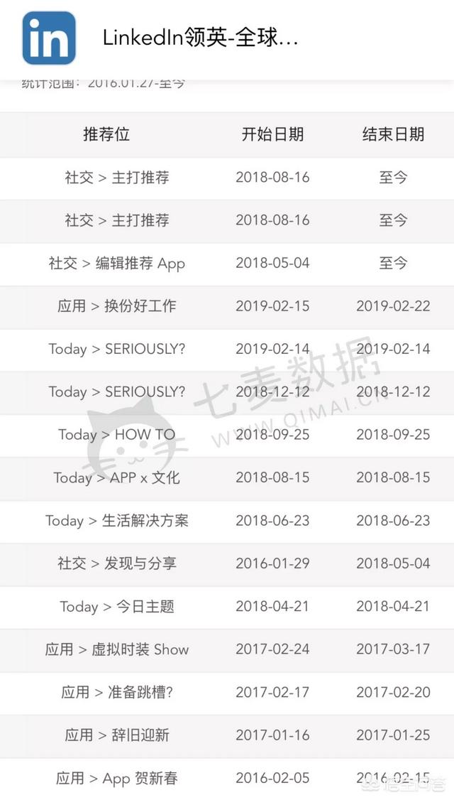 「LinkedIn领英」同样作为社交类招聘 App 深受苹果喜爱,自上架 App Store 以来,其推荐次数高达 15 次,近期分别 2 月 14 日、 2 月 15 日在 Today 和应用分类中被苹果推荐。