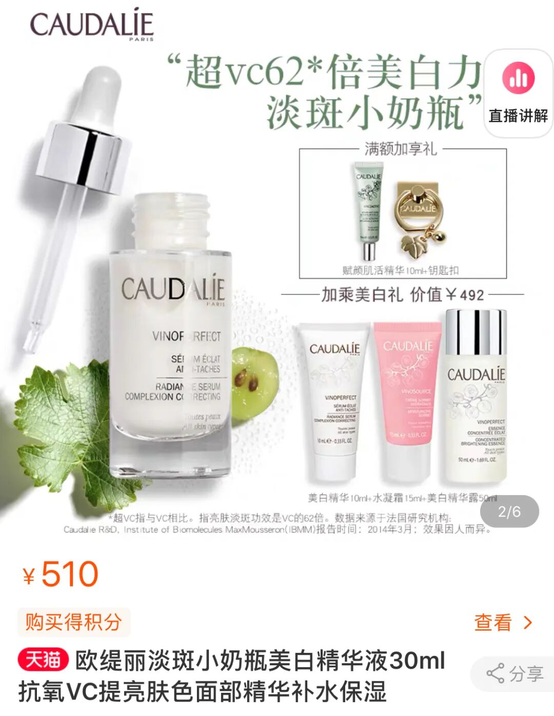 在国内旗舰店的宣传标题中,主图上把“美白力”作为了卖点。