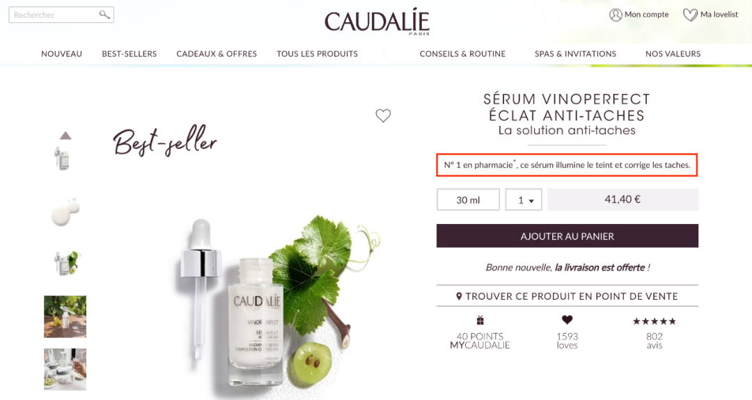 比如欧缇丽的同样一款产品,在法国官网的功效描述是“均匀、提亮肤色”。