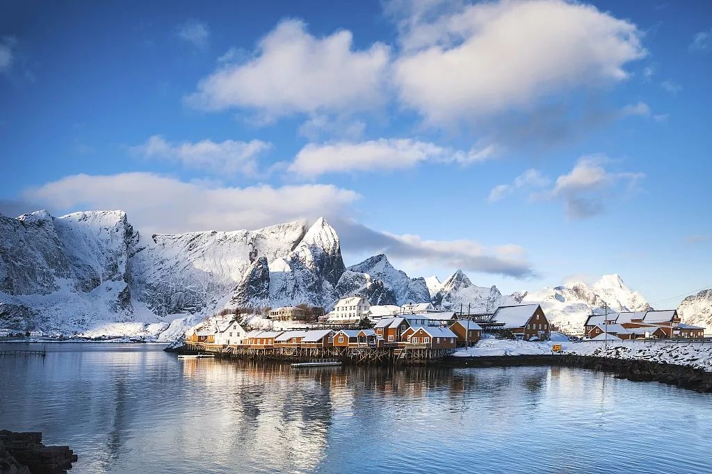 在这里,你可以欣赏极光,可以滑雪橇,可以和北极熊做朋友,五颜六色的小巧房屋成排而建,远处隐藏在云雾中的雪山美得像人间仙境。