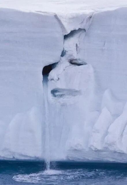 融化的冰壁上展现了一张哭脸,消融的冰水在此刻成为了伤心的眼泪……