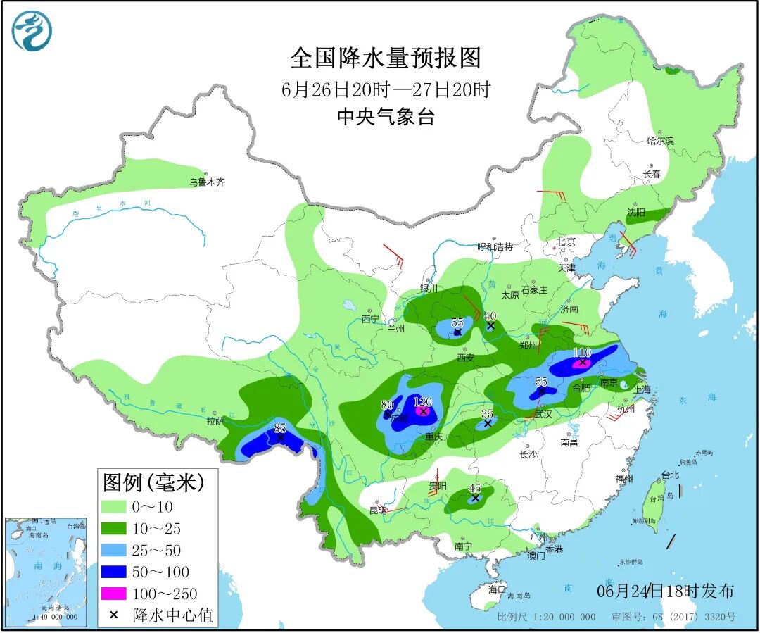 据统计,6月20日至23日,重庆、贵州至长江中下游一带出现持续强降雨天气过程,像是贵州黔南州和遵义、广西桂林、湖南怀化、安徽六安和安庆等局地累计降雨量250~440毫米;重庆南川(127毫米)、贵州黄平(138毫米)和惠水(226毫米)日降雨量达到或突破当地6月历史极值。