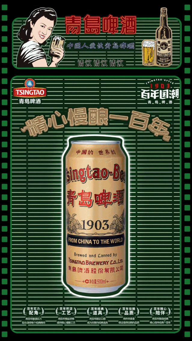 让我们看到了作为一个时代符号和印记的青岛啤酒,不仅蕴含经典历史,并且更饱含了百年的潮流品牌DNA。