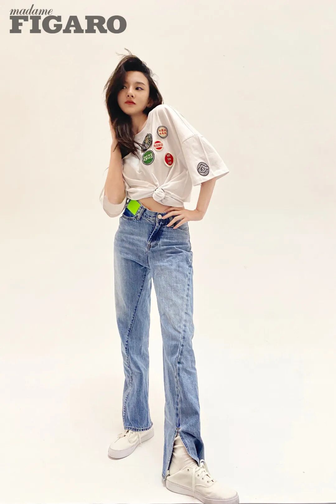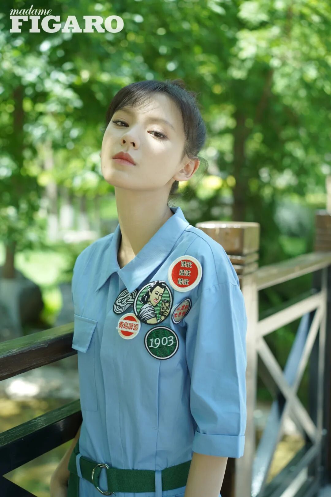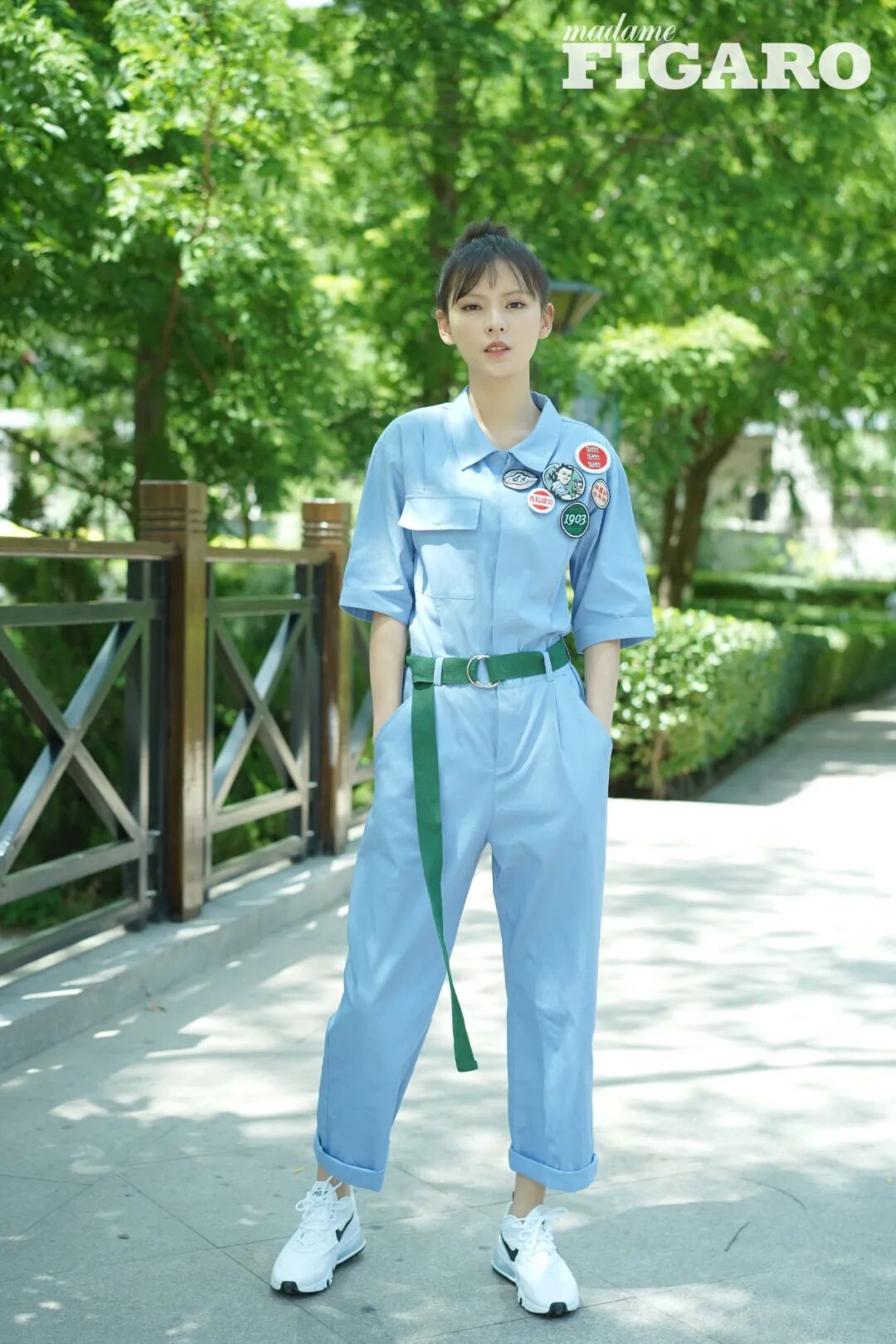 张予曦用白色老爹鞋搭配青岛啤酒国潮连体裤,给我们展示了女生同样也能把工装穿得又酷又飒。