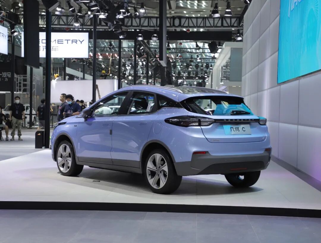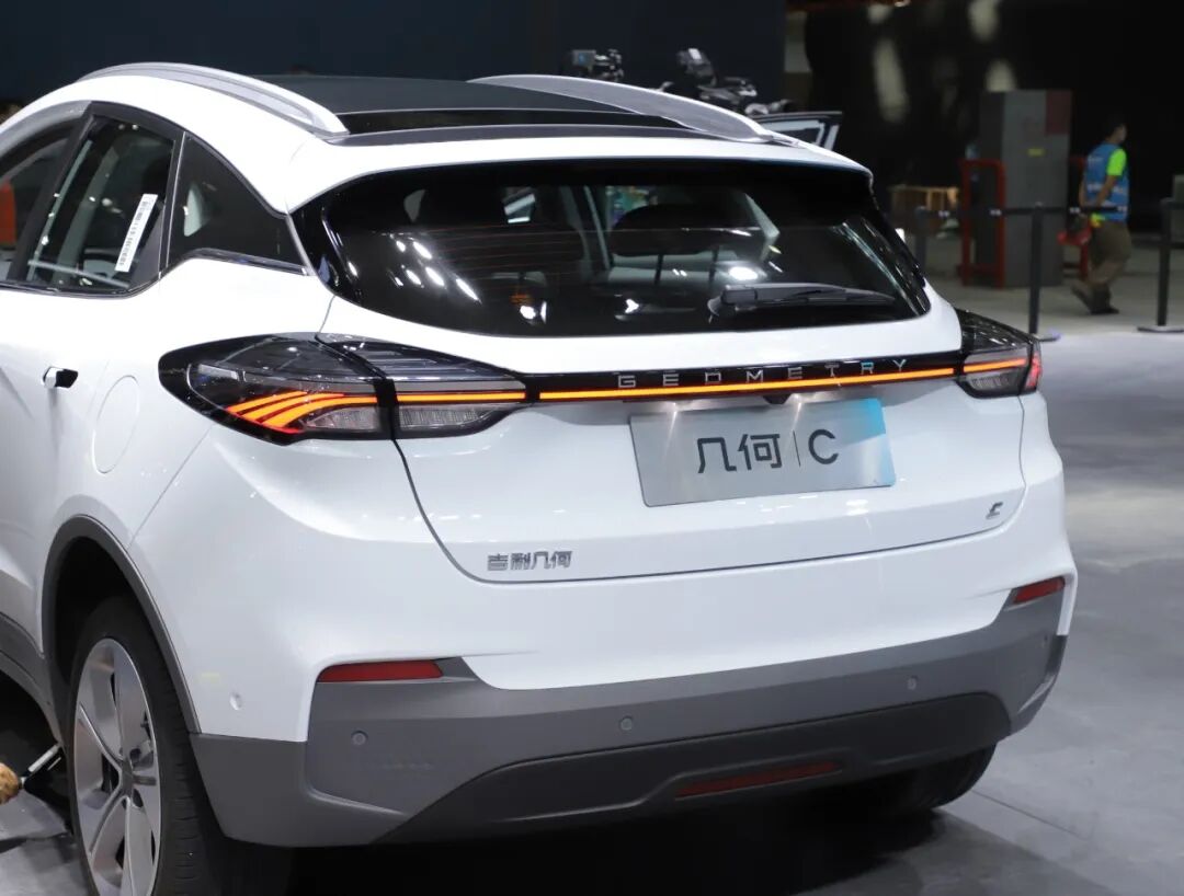 尾灯上方印有“GEOMETRY”的品牌英文名,车尾右下角印有“C”的车型标识,一副国际化视感。