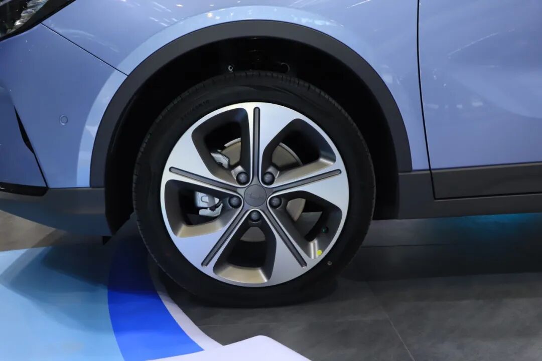 新车采用225/45 R18轮胎,从轮毂造型来看,同样是以优化风阻为目的的设计。