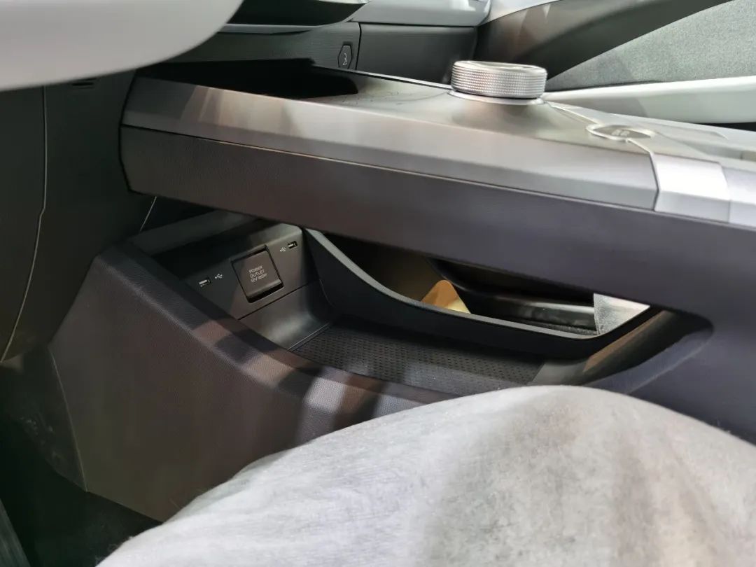 挡把下方还设置镂空储物台,可放置一些零碎物品,同时还有2个USB接口和12V电源,便利性很高。