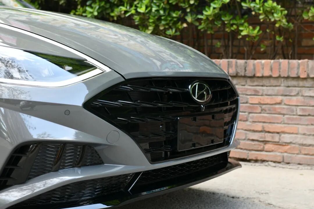 全新一代索纳塔采用现代家族最新的Sensuous Sportiness设计语言,新车前脸配备大尺寸六边形前格栅,整体设计更加扁平化。前大灯造型足够锐利,同时LED日行灯从前大灯下部向上形成了一个渐变的效果,并与翼子板处的镀铬饰条相连,设计足够时尚前卫。