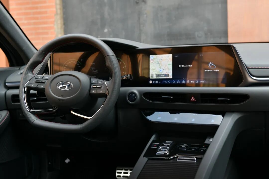 进入车内,第十代索纳塔针对中国消费者的喜好对中控进行了一定的本土化改造。新车重新设计了中控台上部,进而让营造出双联屏的视觉效果。双12.3英寸液晶仪表显示效果清晰,UI设计也较为简洁,方便用户使用和读取信息。