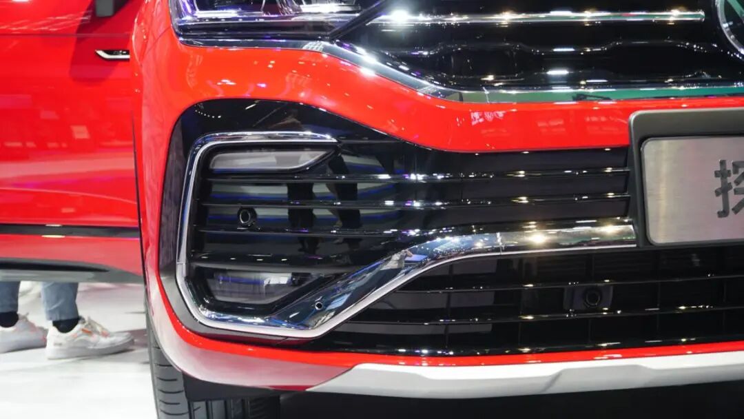 探岳X的前脸采用了大众最新的R-Line运动套件,前包围造型非常夸张,极具攻击性。新车中网与大灯相互融合,这也是大众时下主流的设计手法。值得一提的是,新车中网还镶嵌了大众最新的“R”标,为整车增添了几分运动色彩。