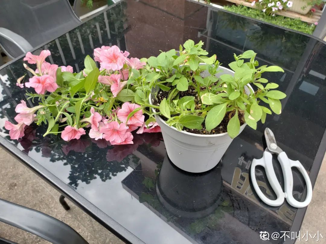 2、一旦矮牵牛开完了一波花,那就及时把快蔫巴的花剪了,花下枝条可以适当剪掉1-2对叶子的长度,过长的枝条也一块剪了,让它留下的枝条高度差不多。