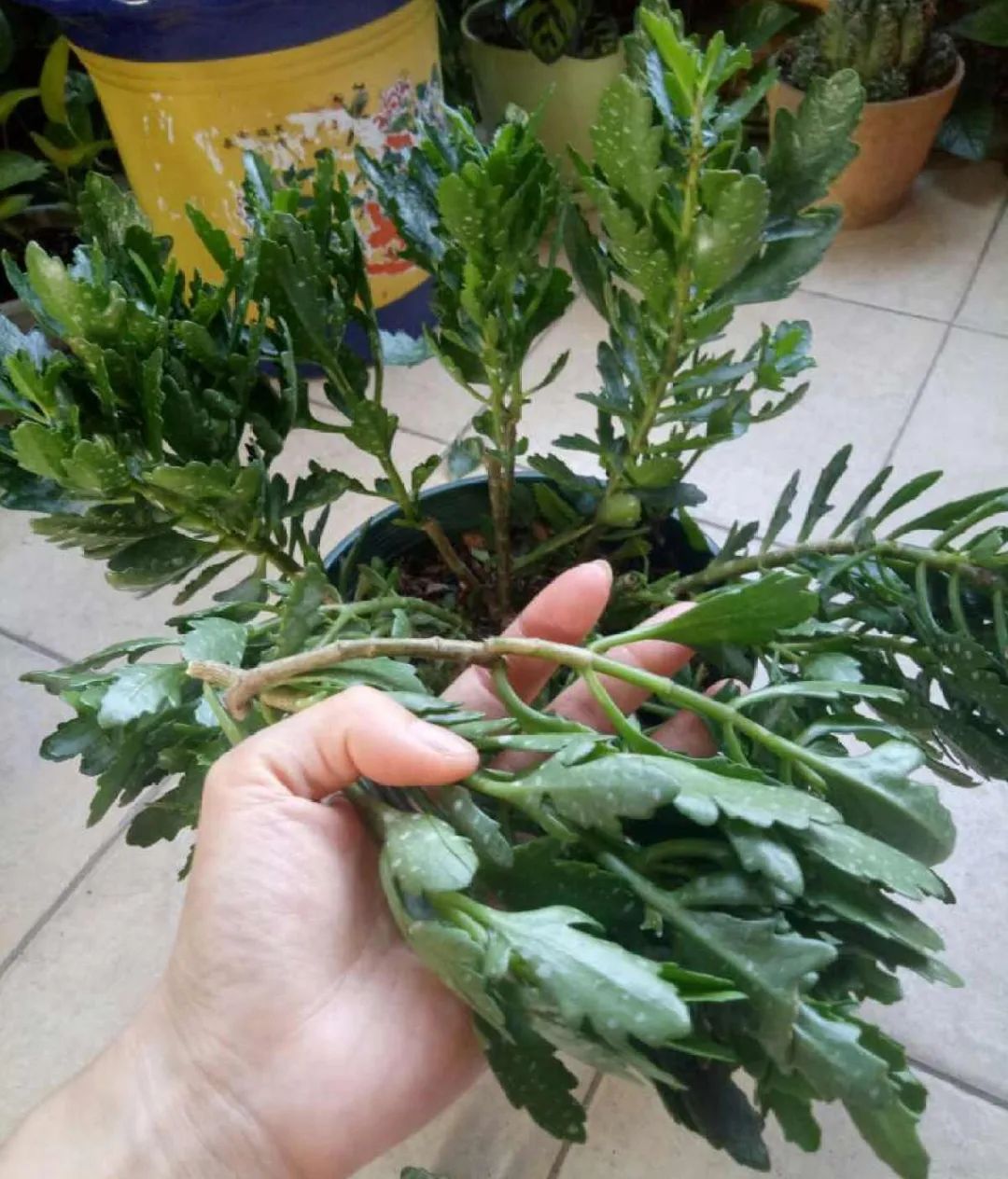 3、如果是老桩,那就留下健壮的主干枝条,其他的都剪掉,别舍不得,下狠手剪就行。剪完了,整个盆里就剩下光秃秃的枝条,放家里凉风能吹到的地方,别黑腐,秋天就能冒新芽开花!
