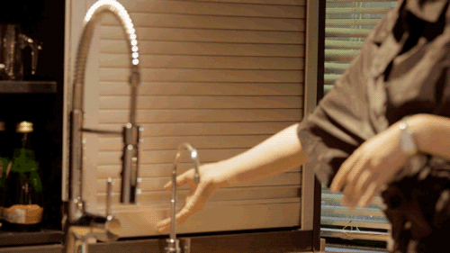 中岛和洗手池的位置对调以后,开放式的厨房,空间看起来更开阔了。