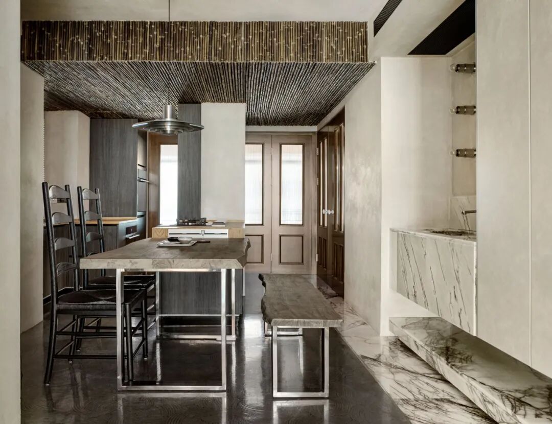 家里尝试了很多新材料,都是其他客户家没有用过的。比如,餐厨区域地面的瓦片,不仅能起到一定的装饰性,触感也很温润,经常有朋友来喜欢直接坐在地上。