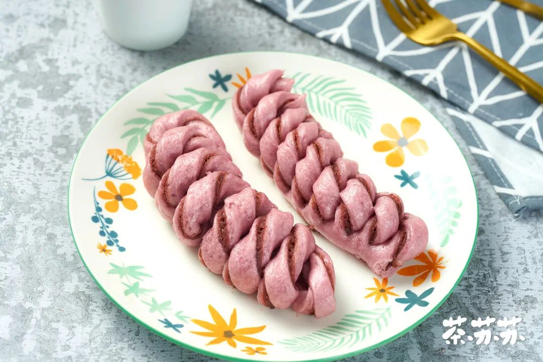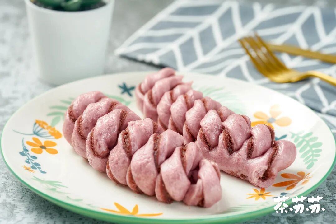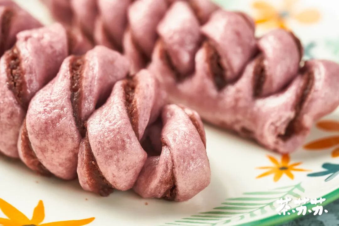 花卷在面食类中也算得上家常了,相信喜欢吃面食的和不喜欢吃面食的宝宝,对它都不陌生啦。我们平时吃的花卷,大多以葱香味的居多,其实花卷也是可以做出很多花样的,今天就分享一款颜值味道双在线的豆沙卷吧!这款豆沙卷,我特别选用了紫薯粉来和面,做出的花卷不仅颜色好看,味道惊艳,而且层次分明,用手掰开就让人忍不住流口水。重要的是,它的制作非常简单,只要把包裹豆沙的面片切成一条条,然后稍微扭成螺旋状,最后放入笼屉蒸熟就好啦。需要用到的豆沙馅,在网上或者去大一点的超市就能买到,如果大家有时间,又不嫌厨房热,自己动手做豆沙馅也是不错的选择哟。想要口味丰富一点,就把豆沙馅料换成红枣泥、紫薯泥、芋泥、栗子泥等。至于非咸口花卷不可的,就在和面时把糖的用量减半(不能全减,会影响面团发酵),然后把豆沙馅换成火腿粒、南乳、麻酱等自己喜欢的食材哈。宝宝们有空的话可以一次多做点,我一般是晚上睡觉前做好,放在冰箱存着,第二天的早餐就不愁了,香软好吃。这款豆沙卷,不管用来做早餐或是垫肚子的下午茶都很合适,家里有小孩的宝妈,更要试试啦,这可比吃零食强多喽~豆沙卷